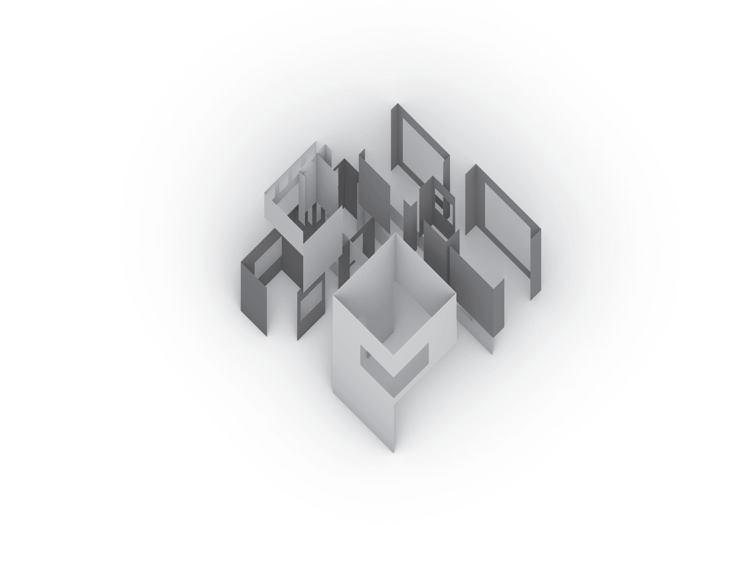 The cluster house is a project completed in 2021 at Studio202 with instructor Alan Rosenblum. For this project, we assigned a color to each function of the home; gray for working, green for resting, red for eating, blue for cleaning, and yellow for meeting. We then began by sketching different conditions for these colors to interact within a home. We then created a language of symbols to apply to each space indicating the layout, openings, and lighting applied to each space. Then the walls were extruded. The goal of this family home is to create a “cluster home” that can be stacked against one another. An important feature of this home is its ability to grow. The idea behind growth is as the family grows so can the house with strategic design allowing for additional bedrooms to be added later.