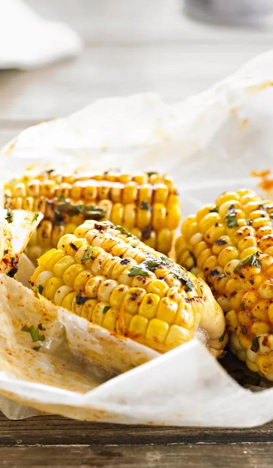 Grilled Corn Cob Bites with Chile and Lime.