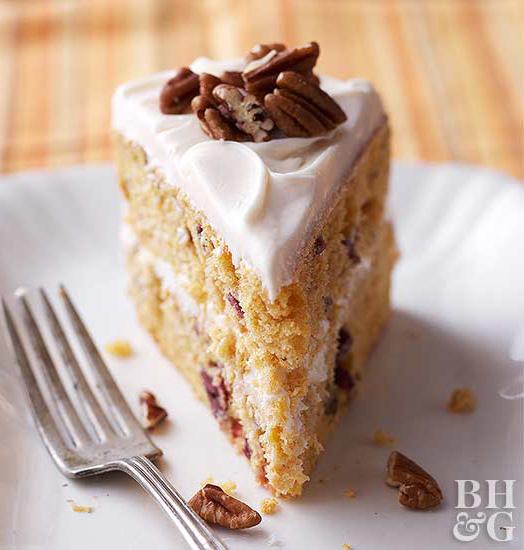STEP 4: Place one cake layer on a serving plate. Frost top of the cake with about 1/3 cup cream cheese frosting. Top with the second cake layer. Frost top and sides of cake with remaining frosting. Sprinkle with additional toasted pecans.