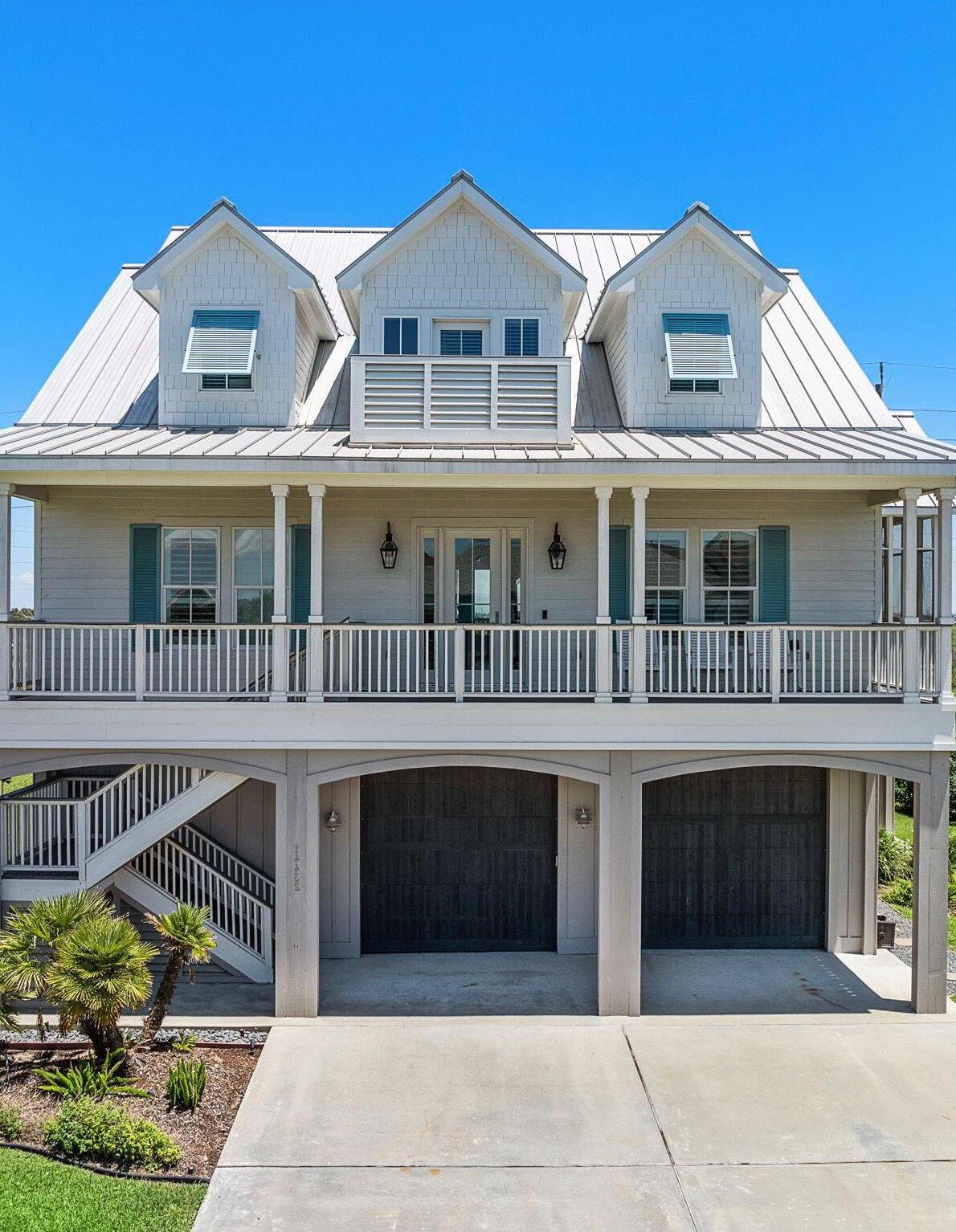 Welcome to one of the most iconic homes on Tiki Island! Prime location on 2 perimeter lots. This modern coastal retreat was completely remodeled in 2023 and features 5 bedrooms and 3.5 baths. Upon entry, you are greeted by an inviting open-concept layout, highlighted by abundant natural light and stunning water vistas from nearly every room. The spacious living area offers a floating fireplace, perfect for cozy evenings, while the gourmet kitchen is a chef's dream, complete with high-end appliances, quartz countertops & custom white oak cabinets. Step outside to discover your own private oasis, featuring an additional living area with an outdoor bar on the ground floor overlooking the pool and breathtaking sunsets. For boating enthusiasts, this property includes 2 boat slips and convenient access to West Bay. Additional features include honed limestone floors, carpeted bedrooms up, TREX decking, stainless steel rails and designer lighting ensuring a lifestyle of luxury and leisure.