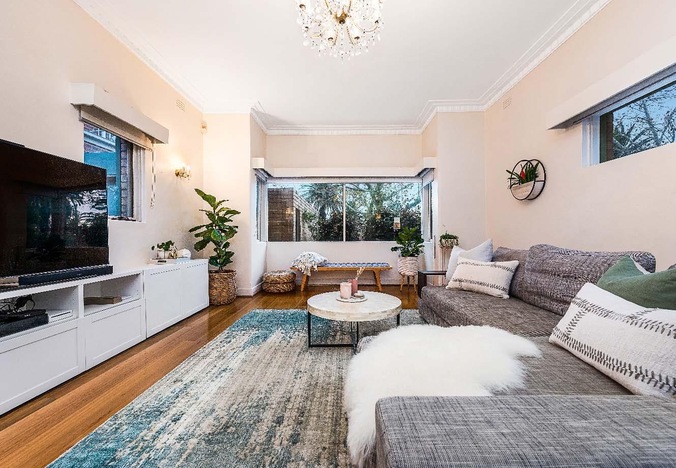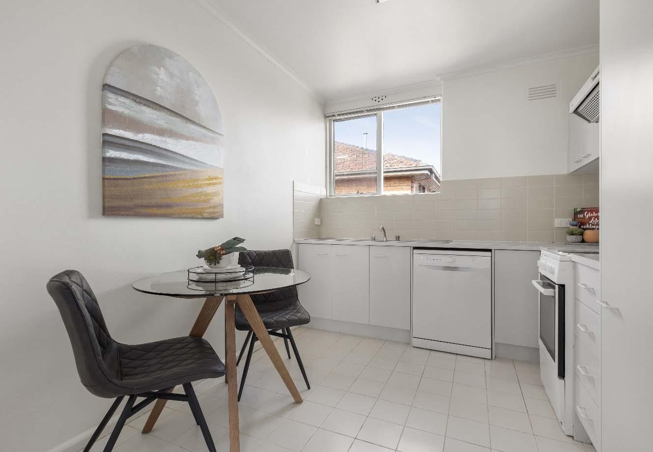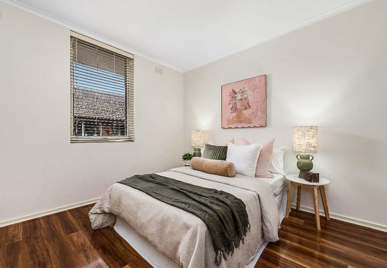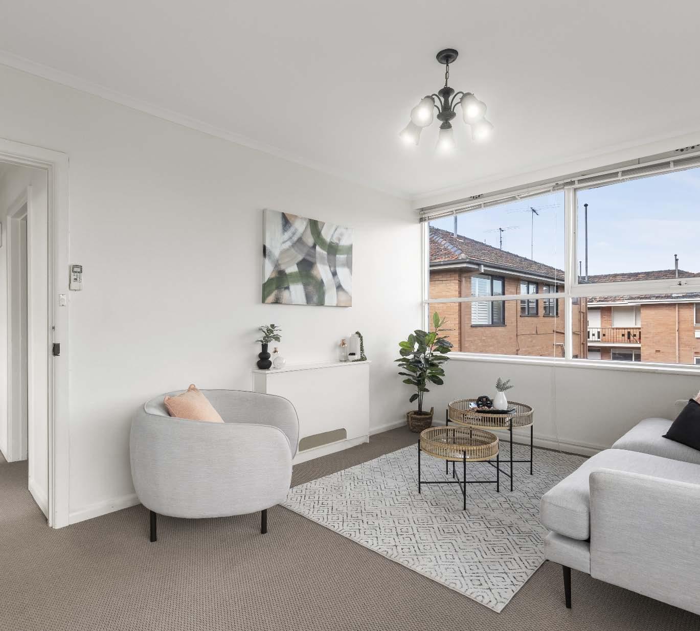 Nestled in a charming Art Deco boutique block of just four, in the heart of St Kilda East, this light filled top floor apartment defies expectations with its classic period charm, picture perfect facade & generous house like proportions. Whether you’re looking to enter the property market or for a future proof investment, this inviting period sanctuary on the corner of Young Street promises a fantastic opportunity & a vibrant lifestyle location to match. A sunny north-west facing front balcony greets you on arrival & introduces an entrance hall with polished timber floors & high ceilings that spills into a welcoming living/dining room with open