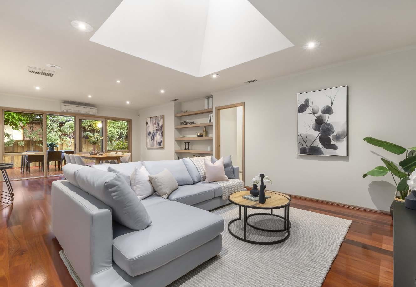 A quiet position at the rear of a block of just two, brings the low maintenance brilliance & house like proportions of this light & bright, beautifully updated freestanding single level villa unit to the forefront. With all the contemporary luxuries you desire & lovely green aspect, it presents the perfect opportunity for young families/couples wanting to break into the market, downsizers looking for single level ease or savvy investors seeking a high growth location. Polished floors greet you on entry & flow through to a split level northerly oriented living & dining zone with striking cathedral timber lined ceilings & large