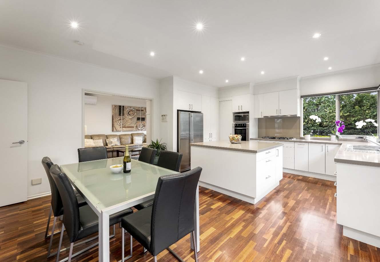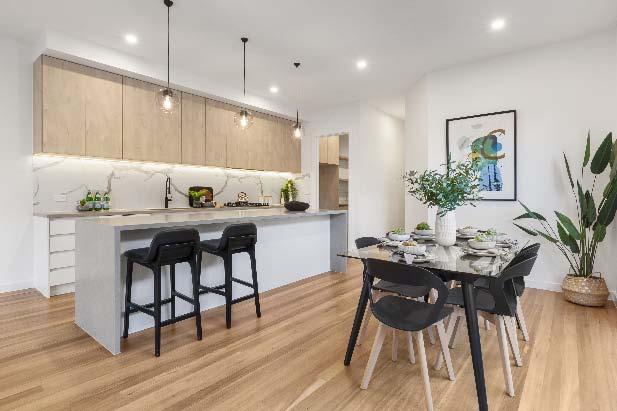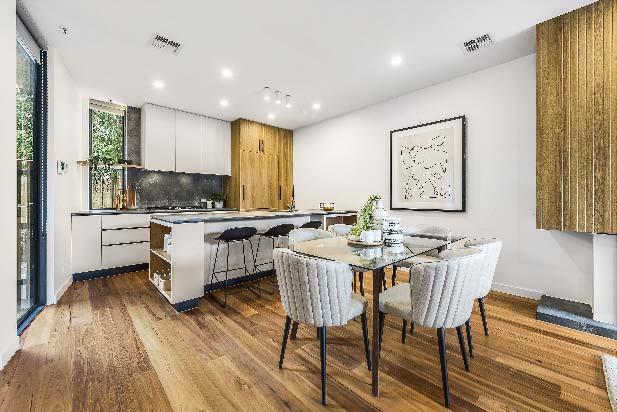 of soft close cabinetry. Downstairs also features an optional main bedroom with built-in robes & stylish ensuite, powder room & Euro laundry. While upstairs an additional main bedroom with built-in robes & ensuite, two additional bedrooms with built-in robes & a sparkling central bathroom with shower & bath completes the accommodation. Other features include single automatic garage, off street parking for a second car in driveway & split system heating/cooling. Conveniently located just minutes from Chadstone Shopping Centre, transport, schools, parks & Oakleigh Central’s shops, restaurants & cafes.