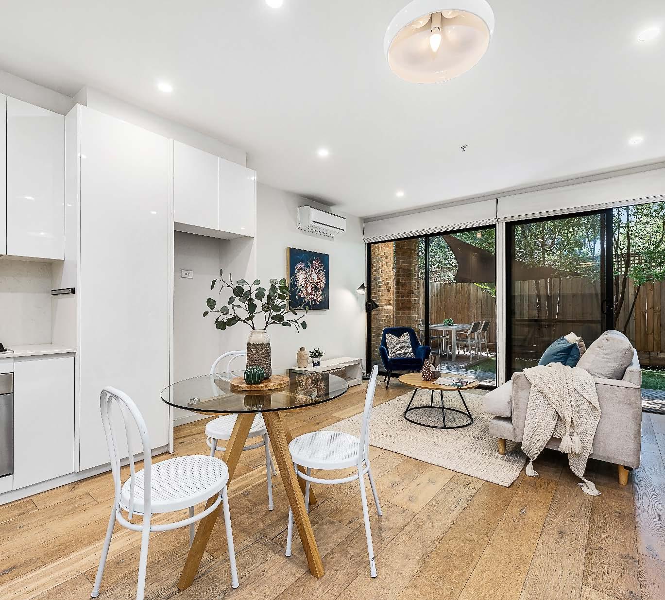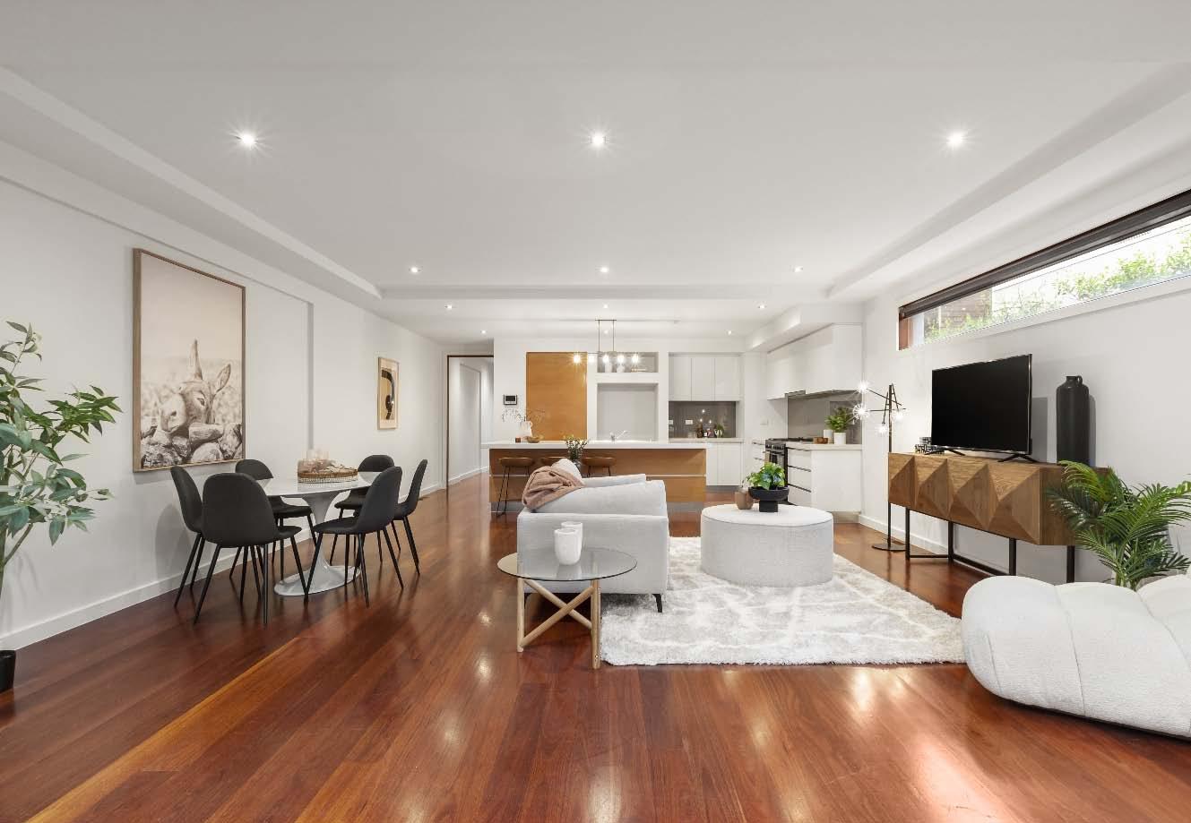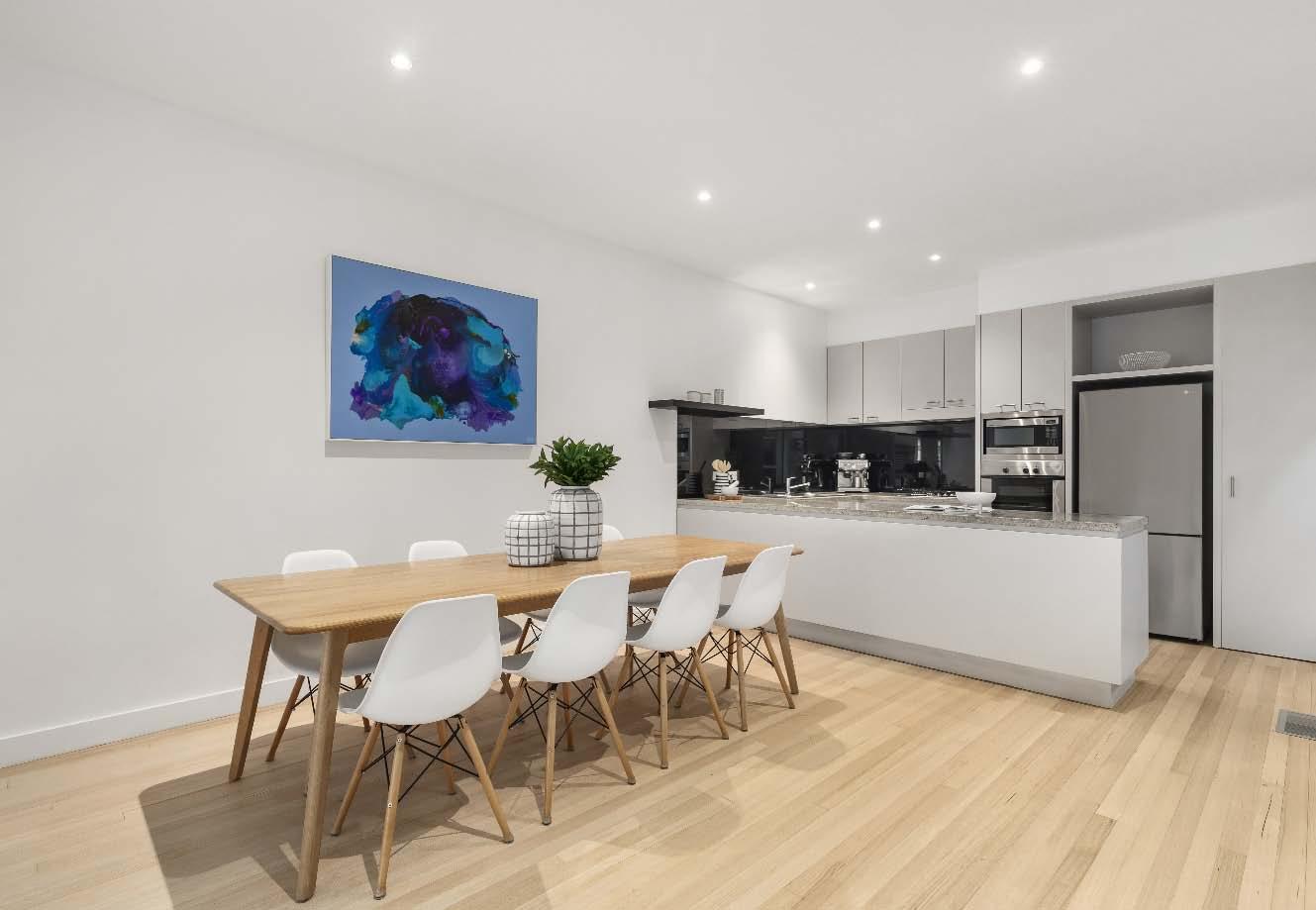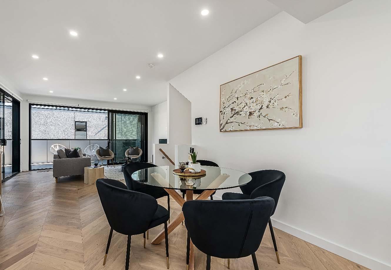 Showcasing contemporary design & a flowing floor plan this as new modern street fronted townhouse, capturing an enviable location & lifestyle, is guaranteed to impress. Timber floors flow seamlessly down the entrance hallway spilling into the light filled heart of the home - an open plan north facing living & dining zone with full width sliding doors opening out to a timber deck & sunny rear garden, creating an outstanding indoor-outdoor connection, perfect for relaxing & entertaining. Also featuring a well appointed gourmet stone kitchen with quality stainless steel appliances (including dishwasher) & an abundance
