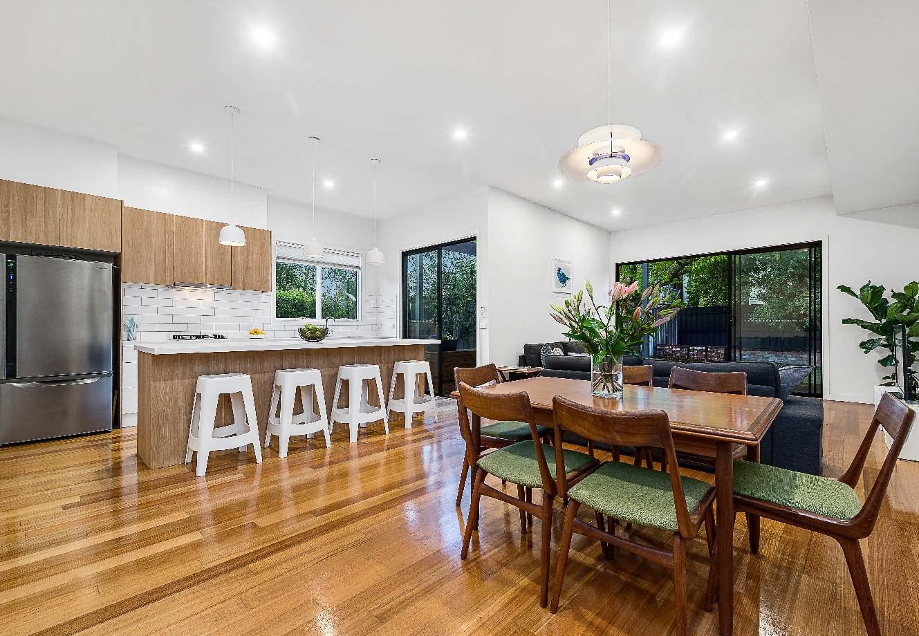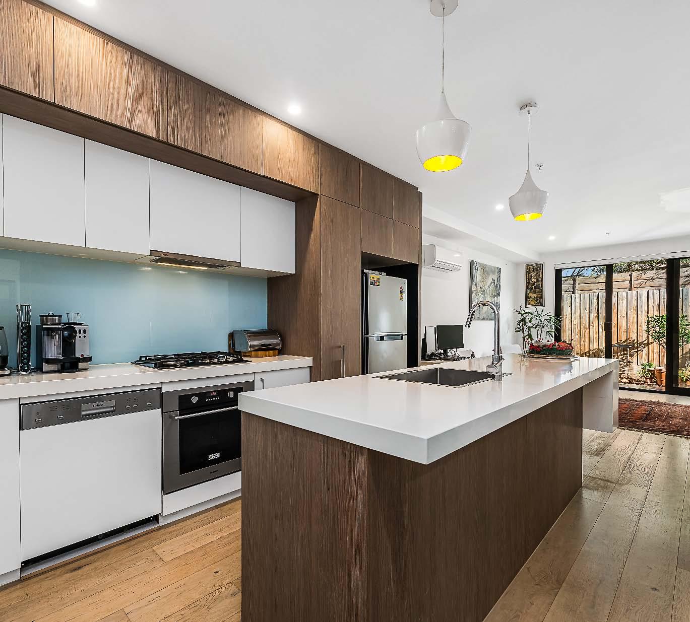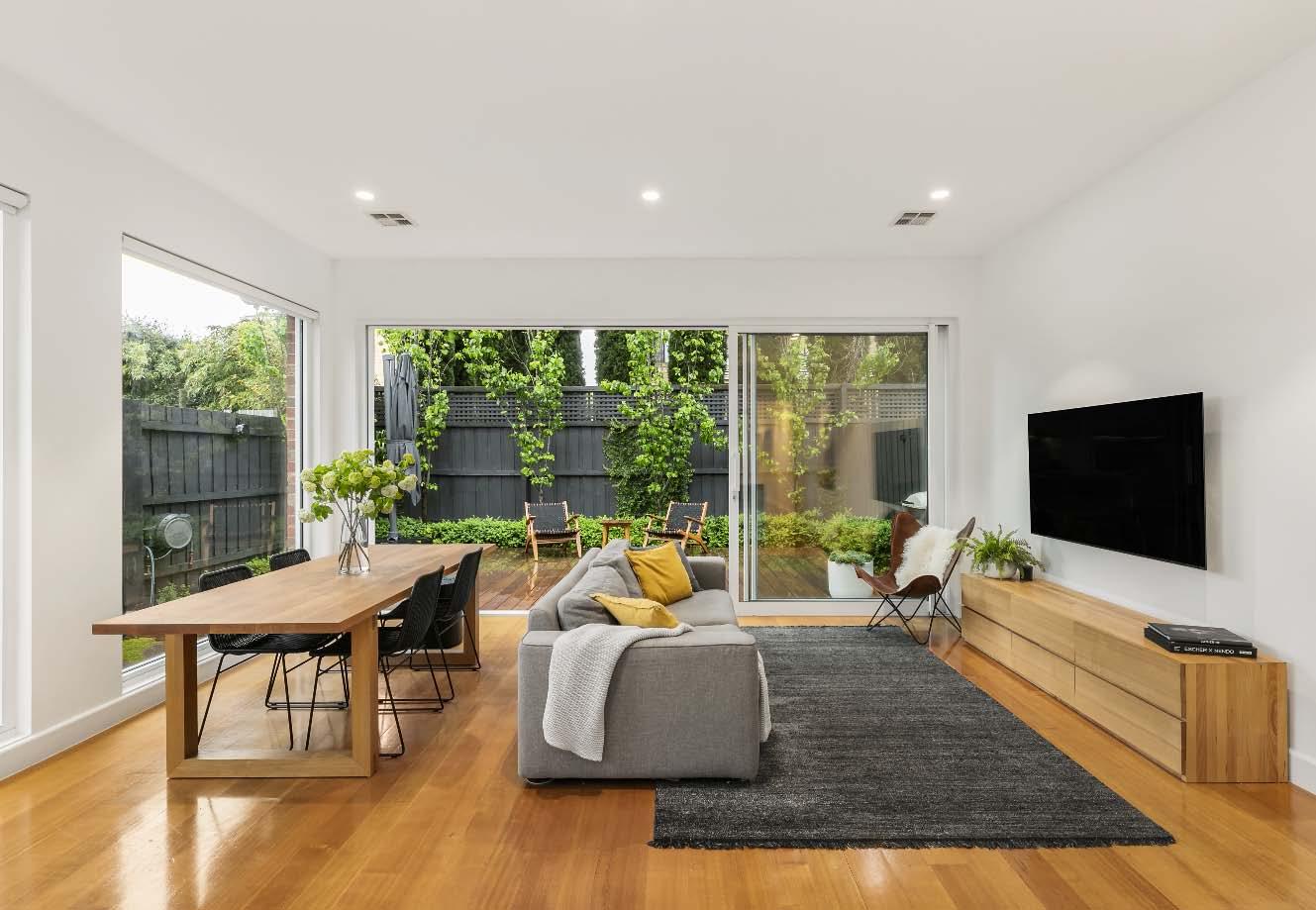 Showcasing contemporary design & a flowing floor plan this as new modern street fronted townhouse, capturing an enviable location & lifestyle, is guaranteed to impress. Timber floors flow seamlessly down the entrance hallway spilling into the light filled heart of the home - an open plan north facing living & dining zone with full width sliding doors opening out to a timber deck & sunny rear garden, creating an outstanding indoor-outdoor connection, perfect for relaxing & entertaining. Also featuring a well appointed gourmet stone kitchen with quality stainless steel appliances (including dishwasher) & an abundance