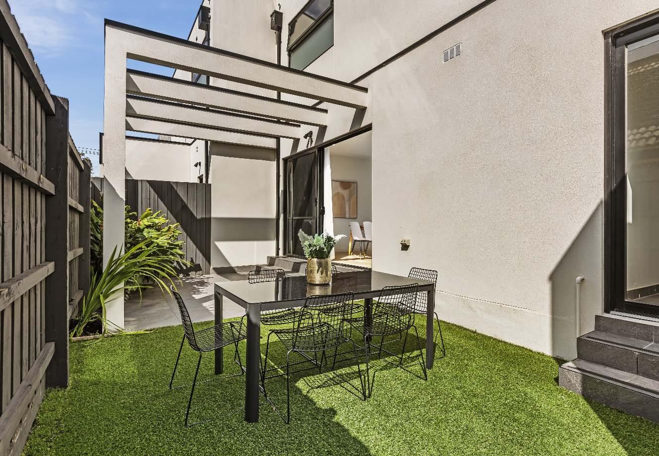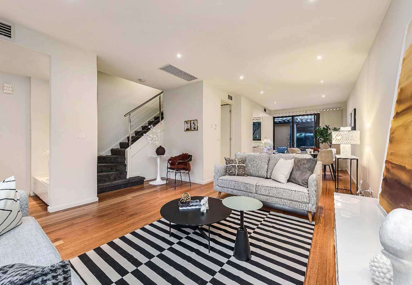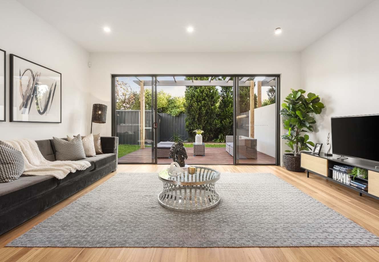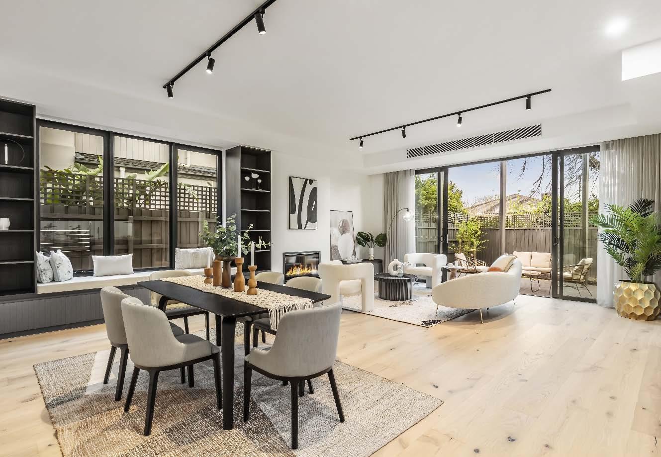 Showcasing contemporary design & a flowing floor plan this as new modern street fronted townhouse, capturing an enviable location & lifestyle, is guaranteed to impress. Timber floors flow seamlessly down the entrance hallway spilling into the light filled heart of the home - an open plan north facing living & dining zone with full width sliding doors opening out to a timber deck & sunny rear garden, creating an outstanding indoor-outdoor connection, perfect for relaxing & entertaining. Also featuring a well appointed gourmet stone kitchen with quality stainless steel appliances (including dishwasher) & an abundance