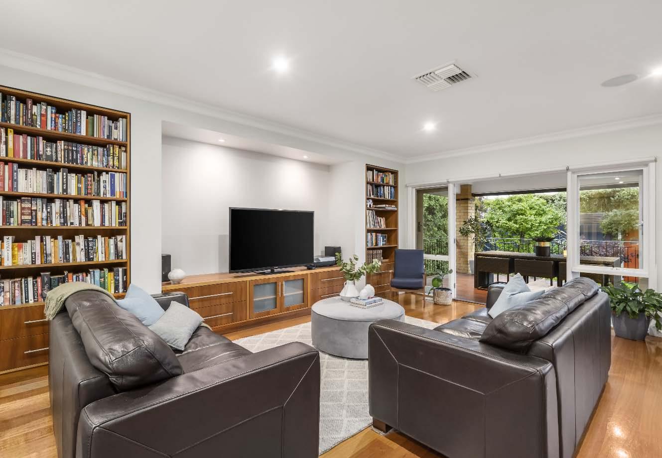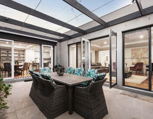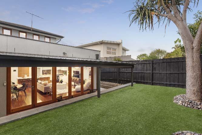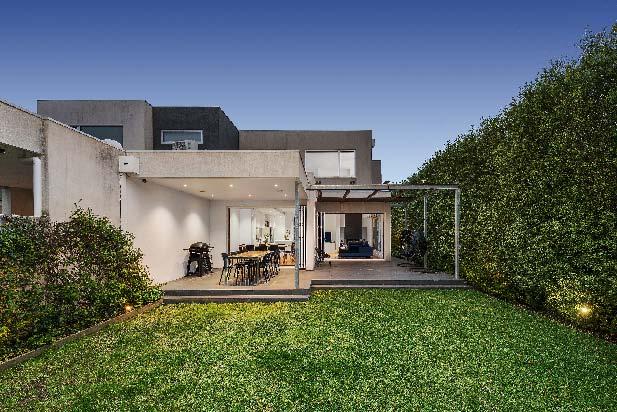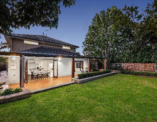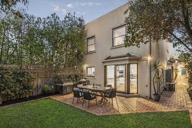 the casual meals area opens out to a glorious entertainer’s courtyard with lovely green aspect & retractable awning creating a fabulous indooroutdoor space perfect for all weather use. Upstairs, the main bedroom with expansive built-in robes & ensuite, two additional double bedrooms & a family bathroom with bath, shower & separate toilet complete the accommodation. Other features include single auto garage, off street parking for a second car behind auto front gates, intercom entry, Euro laundry, powder room, split system heating/cooling, double glazed windows & under stair storage.