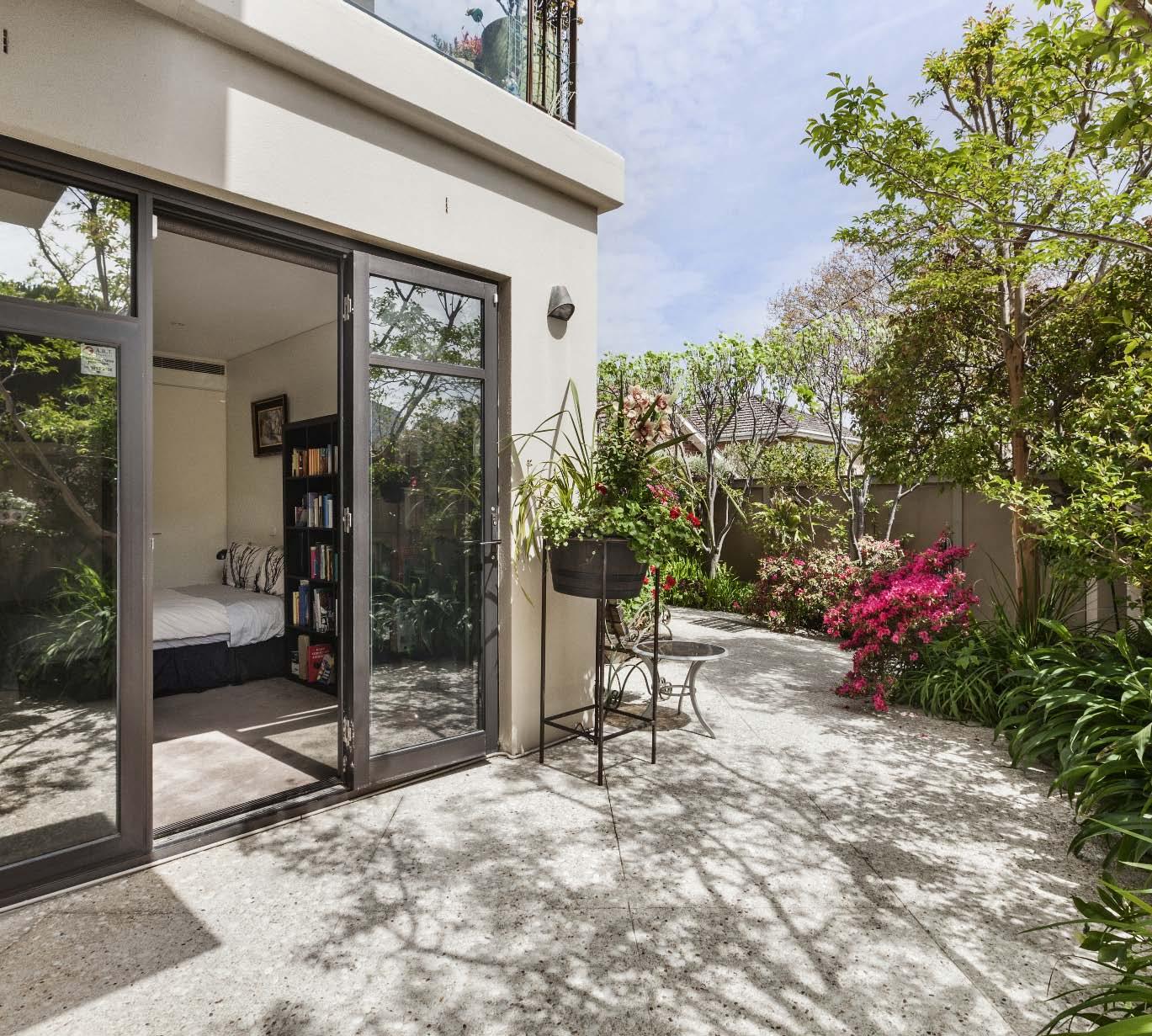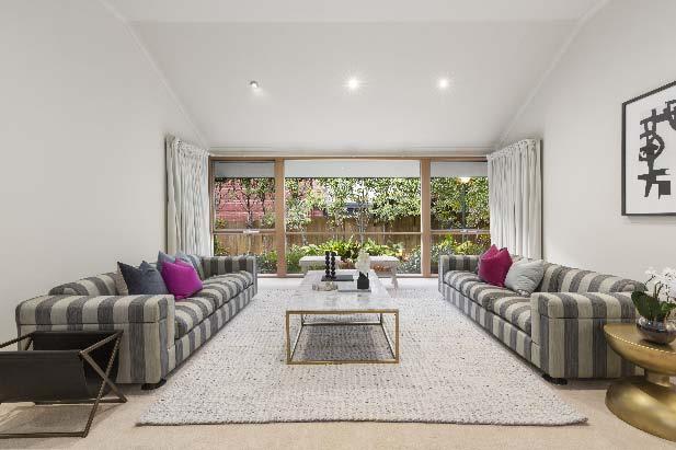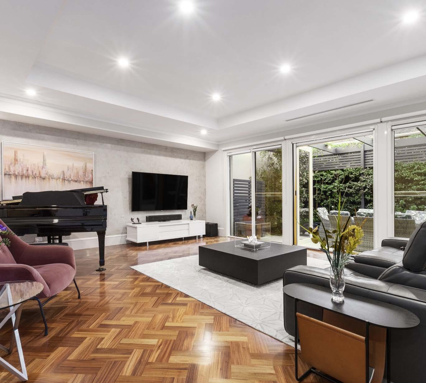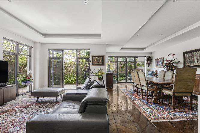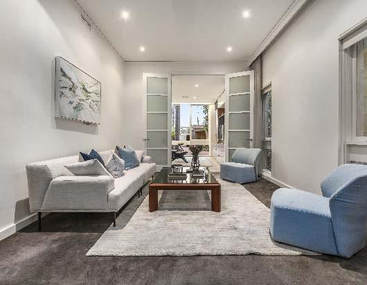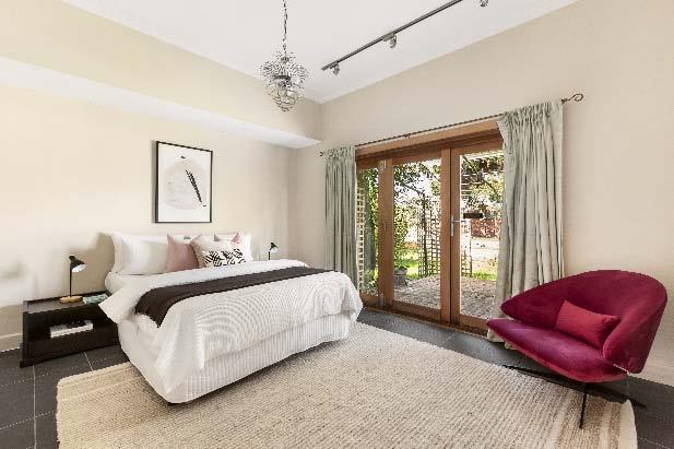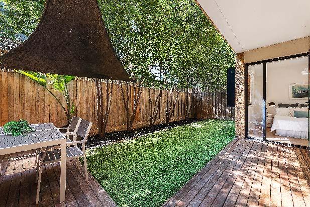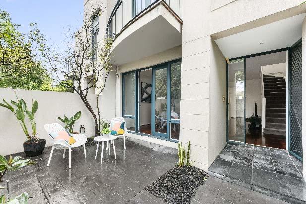 established garden surrounds, creating a fabulous indoor-outdoor connection, ideal for alfresco entertaining! All further complemented by a modern well-equipped kitchen with a suite of Miele appliances. A main bedroom with ensuite, walk-in/built-in robes & outdoor access & a second spacious bedroom with built-in robes & a dual access bathroom/powder room complete the accommodation. Other features include zoned ducted heating/air conditioning, secure basement parking for two cars with two storage rooms & lift access, security alarm system, security screens, video monitored entry, external blinds & irrigation.