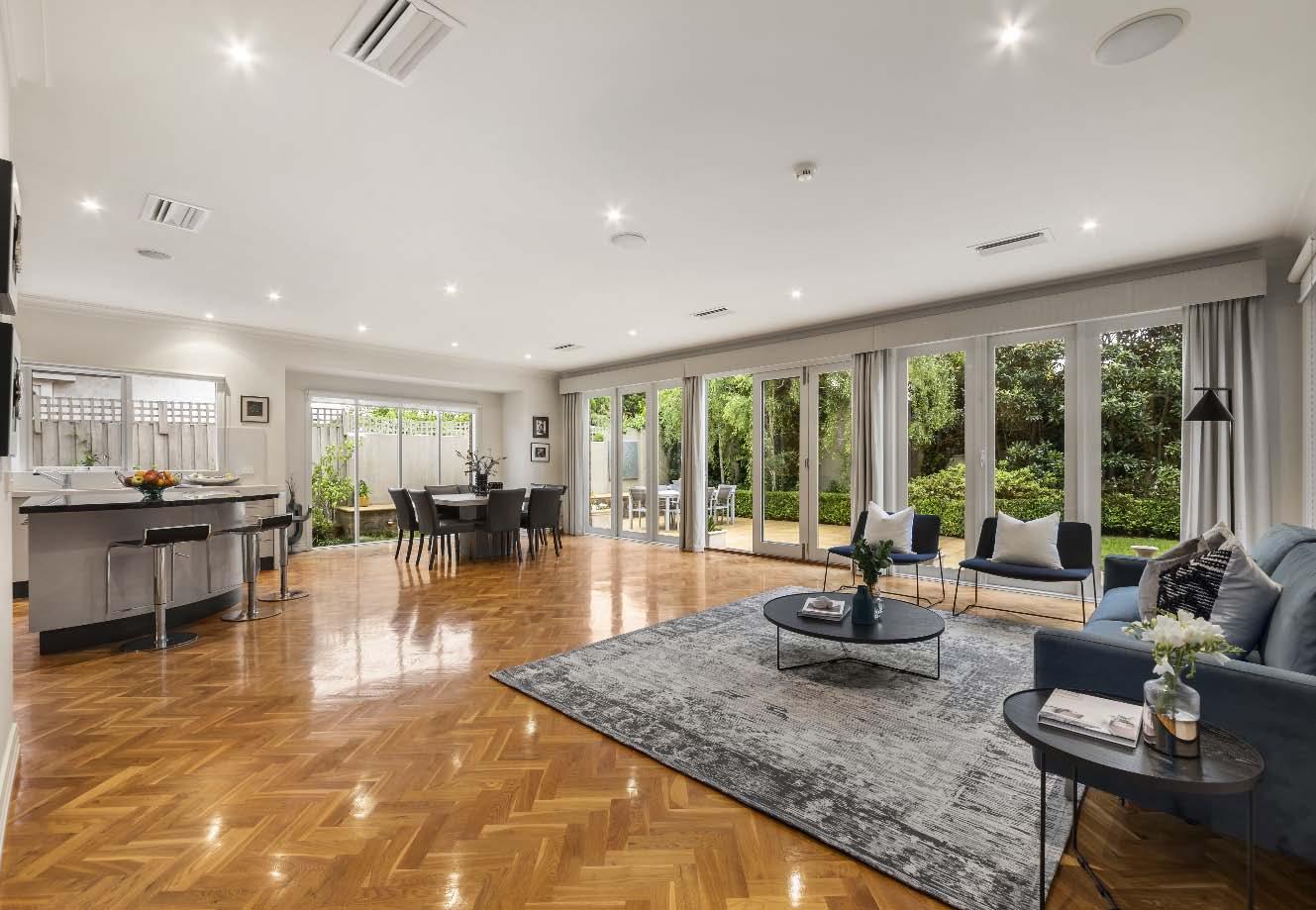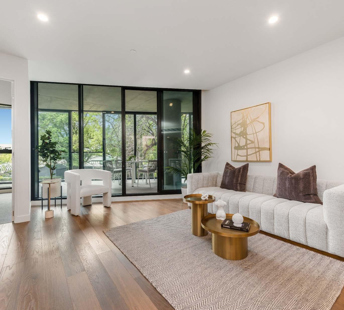 Ideally located in a boutique collection of just ten, with a prestigious Toorak address, this sophisticated ground floor garden sanctuary with high end finishes, conveys a timeless appeal that truly sets it apart. A dressy downsizer suited to those looking for single level ease & with the added bonus of private entry via Martin Court – “The Belvedere” is ideal for those wanting to enjoy a luxurious lifestyle without having to compromise. From the moment you step inside the generously proportioned northerly oriented living & dining zone, you’ll be instantly captivated by the wrap around courtyard, encapsulated by