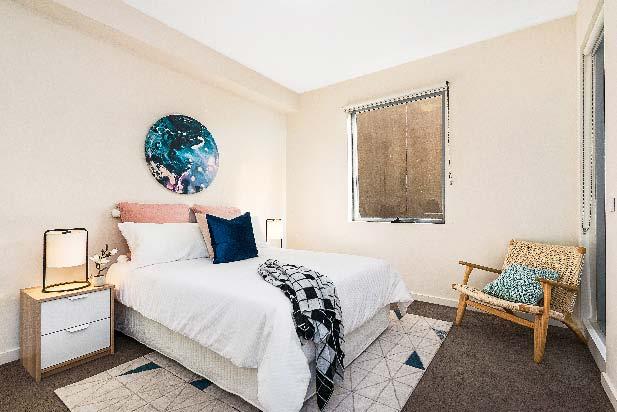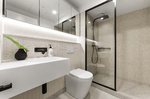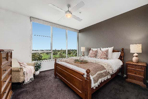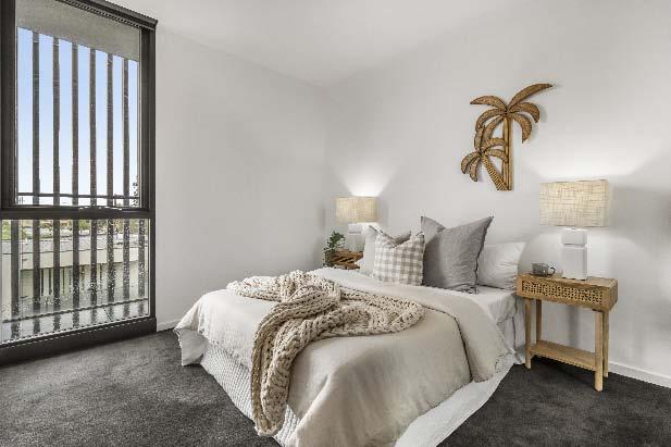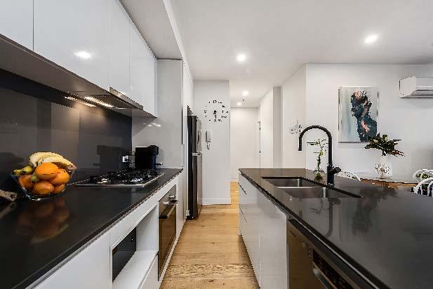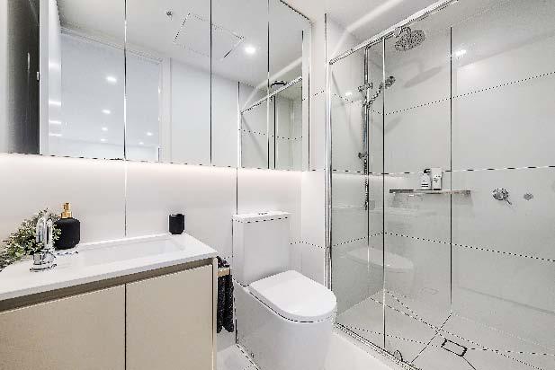 wardrobes & featuring a ceiling fan, both sharing a bright white bathroom with a shower-over-bath & a white vanity with plenty of storage. With secure entry, new lifts, Euro laundry & a doggy door for your best friend, truly endless amenities abound metres to transport, the cosmopolitan lifestyle of Carlisle Street where you’ll want for nothing, a short walk to St. Kilda, Elwood & Windsor. You can’t go wrong.