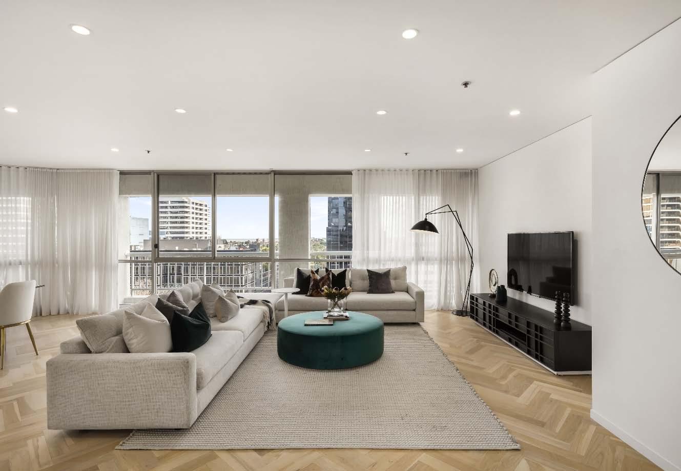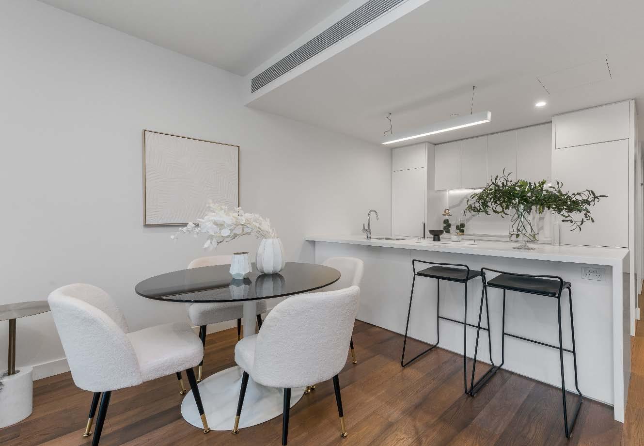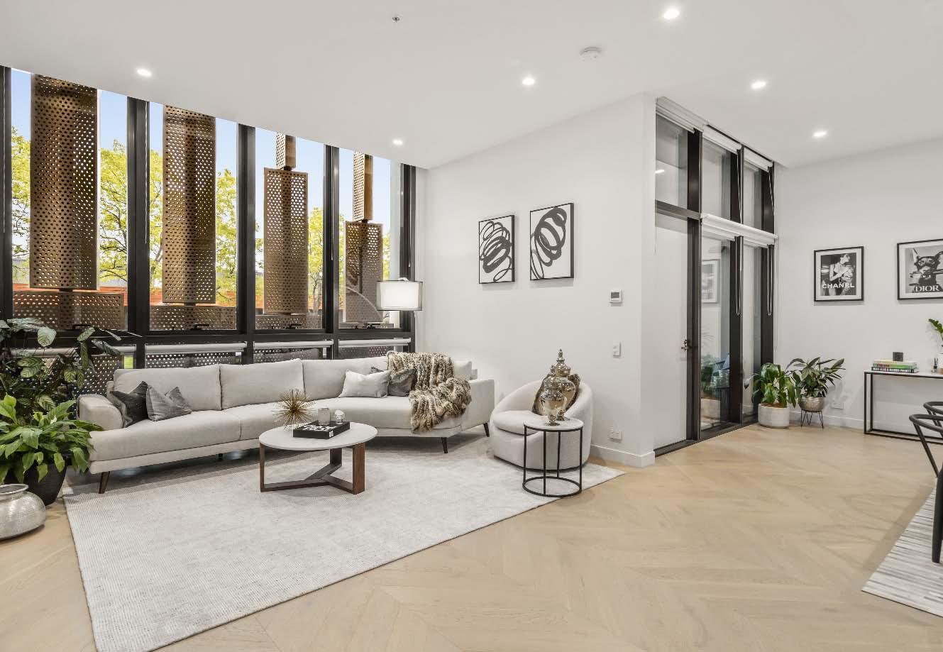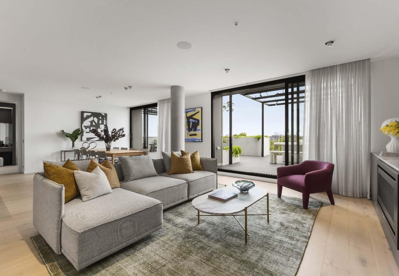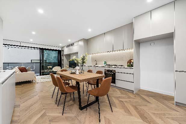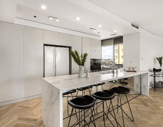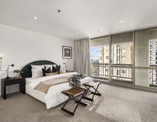 & entertaining. Also featuring a generous main bedroom with walkway of mirrored built-in robes & luxe ensuite & two additional bedrooms with built-in robes, all with full length windows & stunning outlook as well as a stylishly appointed central bathroom & a massive Euro laundry. Other features include video intercom entry, lift access, basement parking for two cars with storage cage & heating/cooling as well as premium onsite amenities including an exclusive resident’s lounge, library, meeting rooms & a landscaped rooftop garden overlooking the city with BBQ facilities.