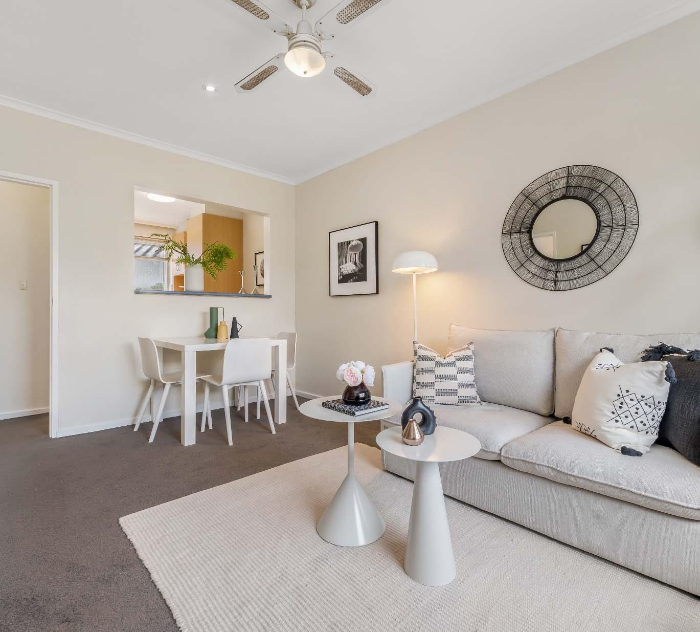 Bathed in natural light & so much larger than expected, this elevated two-bedroom apartment delivers house-like proportions & a brilliant lifestyle location. Set in a boutique low-rise block of nine, the spacious home is immediately ready for move-in or provides fantastic bones for a spectacular update. Cleverly designed, the spacious interior comprises a large kitchen & meals equipped for current use with an oven & gas cooktop, open living space with sunlit undercover balcony, adjoining dining room, central bathroom with shower-over-bath & laundry facilities & two inviting bedrooms lined with