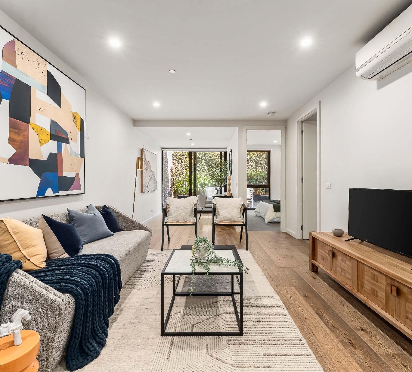 feature thick carpet, built-in mirrored wardrobes & split system in the master. Followed by a black & white themed bathroom with room for a laundry & finally, a separate toilet caps off this ultra-low maintenance home. With new video intercom & gates securing the property, you’ll love the enviable location, positioned with easy access to all that life has to offer in & around the St Kilda precinct; including Carlisle & Chapel Streets, transport & leisurely walks to parklands. Close to private schools & in the Windsor primary & Elwood secondary zones.