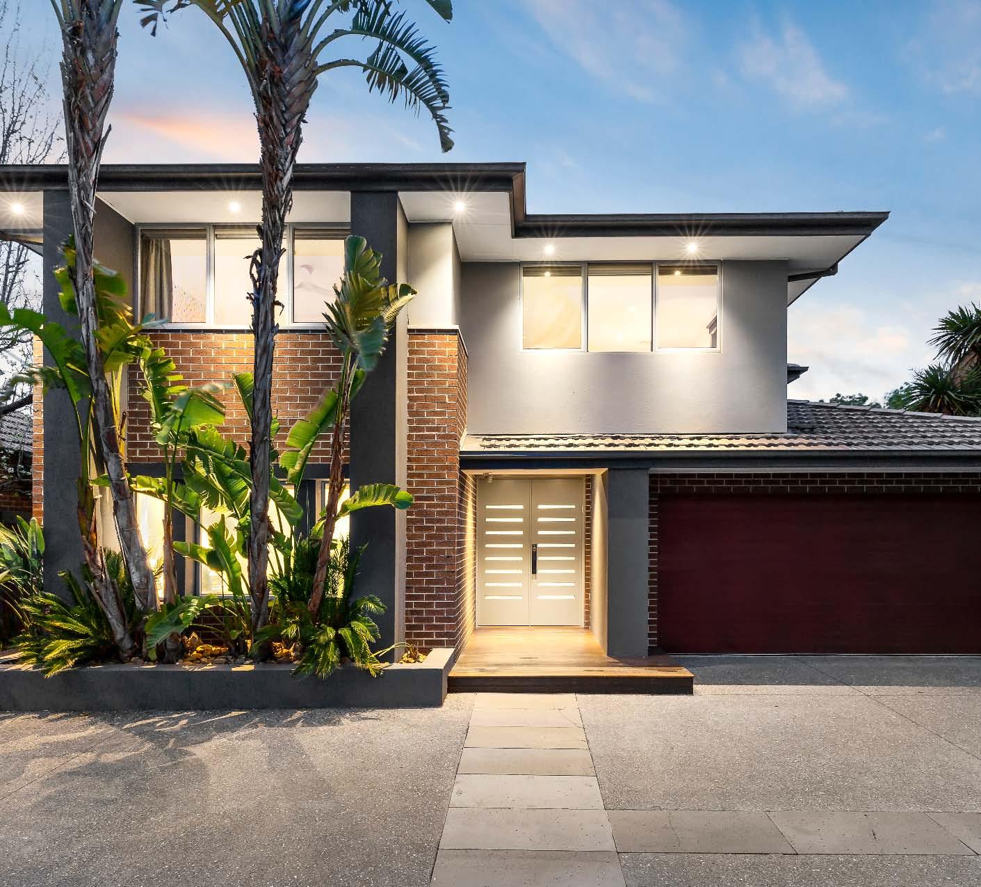 guest suite with an ensuite, storage & a garage concludes the downstairs. Upstairs, the easeful family lifestyle continues with a hotel-style main bathroom featuring a wet room with freestanding bath, followed by two generous bedrooms with built-in wardrobes, concluding with an open plan living room/retreat. A sublime fully tiled ensuite with a double shower & twin vanities plus light filled walk-in timber wardrobes enhance the main bedroom. Outstanding comforts include zoned heating/cooling, solar panels, security system & only moments to Hawthorn Road shops, transport, private schools & excellent amenities.