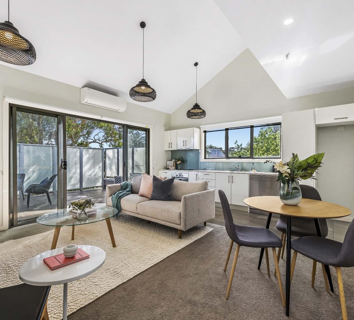 stainless steel appliances. This space opens out to two alfresco areas - a paved side courtyard and a serene north facing rear courtyard with landscaped surrounds, ideal for indoor-outdoor relaxing and entertaining. Other features include split system heating/cooling, a wall heater and Euro laundry. Ideal for young couples or families looking to break into the market or downsizers looking for single level ease close to public transport and some of St Kilda’s best lifestyle amenities.