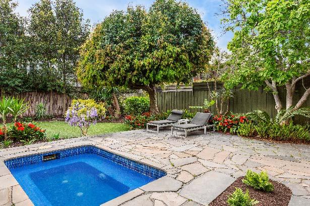 front of the house & a third at the rear. Adding to the appeal is a central bathroom with freestanding bath, shower & heated floors. At the heart of the home an open plan living & dining zone with an open fireplace enjoys access to a landscaped side courtyard. This light filled space is further complemented by an impeccably appointed stone kitchen with a central island bench/breakfast bar, premium appliances & excellent storage. Other features include ducted heating/cooling, a custom fitted laundry, double-glazed windows & off street parking for one car accessed via Faulkner Street with automatic sliding gates.