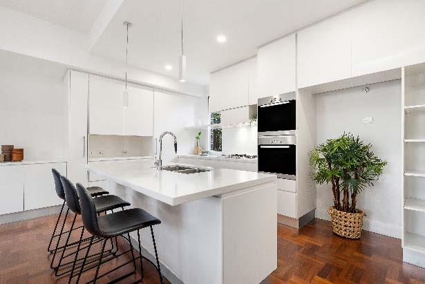 deck for year-round alfresco entertaining & space for kids equipment or a veggie garden. Further enhancing the easeful lifestyle, the chef’s kitchen is equipped with the latest Miele appliances, soft close joinery & island bench. The master suite is complete with awalk-in wardrobe & ensuite. The choice of two bedrooms offer built-in wardrobes, concluding with a matchless main bathroom & a barn-style shower door that has to be seen. Add split systems in every bedroom, Haier heating/ cooling, Euro laundry, video intercom, secure underground garage for two cars all in a most up-&-coming locale.