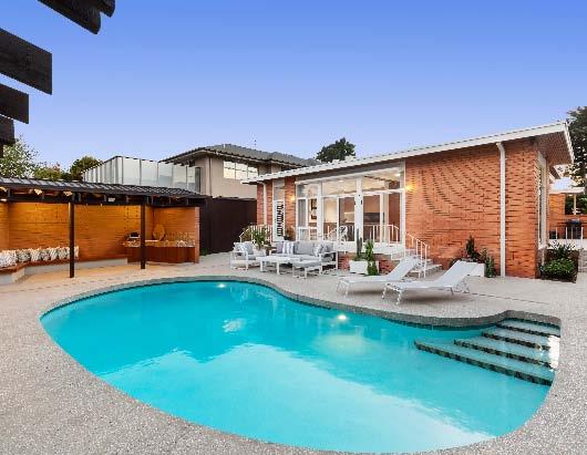 complete with a built-in, gas-plumbed BBQ — ideal for hosting family & friends. Upstairs, a versatile rumpus room doubles as a children’s retreat or study, while two bedrooms feature built-in desks. Additional highlights include a drying cupboard in the laundry, under-stair storage/ cellar space & secure off-street parking for two cars via an electric roller door carport/shed. Outdoors, the backyard & side courtyard provide exceptional space for entertaining & relaxing. The fully renovated pool & equipment sit amid an established garden, delivering a private oasis for year-round enjoyment.