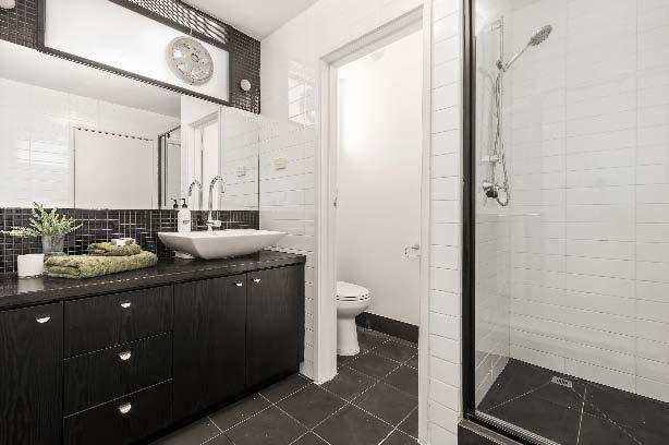 & a fully tiled bathroom equipped with a wall-hung vanity, walk-in shower & under-tile heating. The versatile dining is perfect for meals & can easily function as a multi-seat home office. Cleverly divided into sleeping & living areas by a soundcontrolling cavity slideway wall, this apartment truly offers a blend of elegance & functionality. The apartment is equipped with undercover offstreet parking, secure intercom-entry & multiple reverse-cycle air-conditioners. Additional features include custom kitchen cabinetry, built-in bedroom robes, upholstered banquette storage & block-out & sheer window-furnishings.