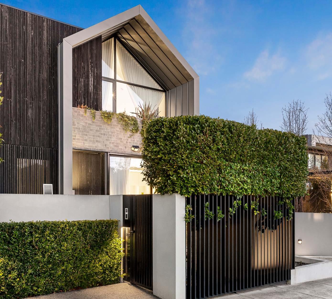 courtyard. Upstairs, a main bedroom with balcony, ensuite & built-in robes is complemented by three additional bedrooms (two with built-in cabinetry & one with balcony access), a central bathroom & shared separate toilet. Other features include ducted heating, split system heating/cooling, a downstairs powder room, separate laundry, under stair storage, a cleverly converted garage into a versatile work from home space/gym/kid’s retreat with the option to convert back if required plus off street parking for two cars behind auto gates (with single carport) & parking for a third car in the driveway.