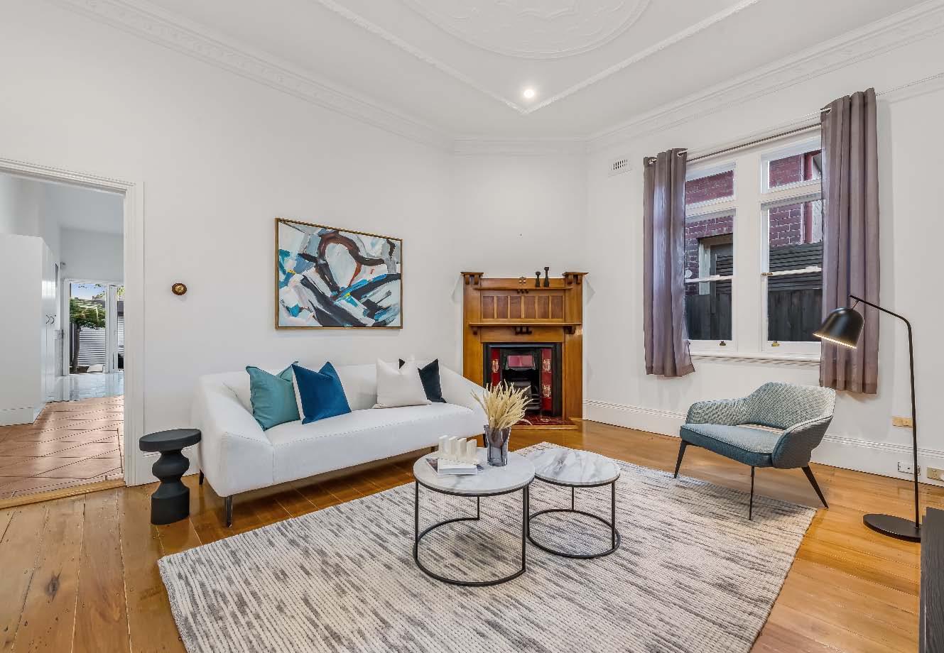 features, including decorative cornices, a marble hearth with an Art Deco mirror & polished timber floorboards, enhance the home’s appeal. Additional highlights include a dedicated entry with storage, split system air con unit, timber venetian blinds & the security of intercom entry. In a boutique block of just nine apartments, this home is perfectly positioned just a block from the vibrant cafés, bars & shops of Fitzroy Street, with trams, Albert Park, Acland Street & the beach all just a short stroll away.