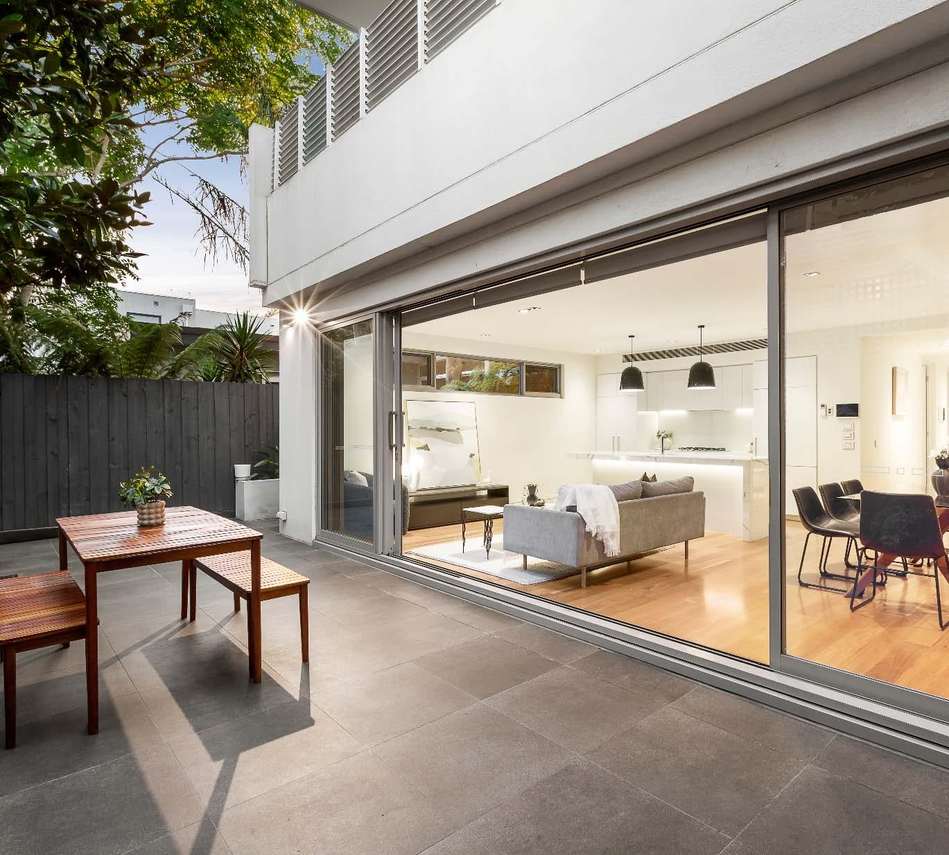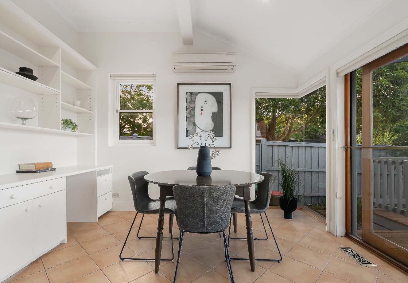 living room & an open plan family living/meals area served by a well-appointed modern kitchen. Outdoors, a private north facing courtyard shaded by a stunning palm tree provides an ideal setting for alfresco relaxing & entertaining. Also featuring a central family bathroom with spa bath & shower, a dedicated study, separate laundry, additional toilet, ducted heating, split system heating/cooling & an alarm. Conveniently located in an unbeatable lifestyle location close to Ripponlea Village’s shops, restaurants & cafes, a choice of transport options, Greenmeadows Gardens & elite schools.