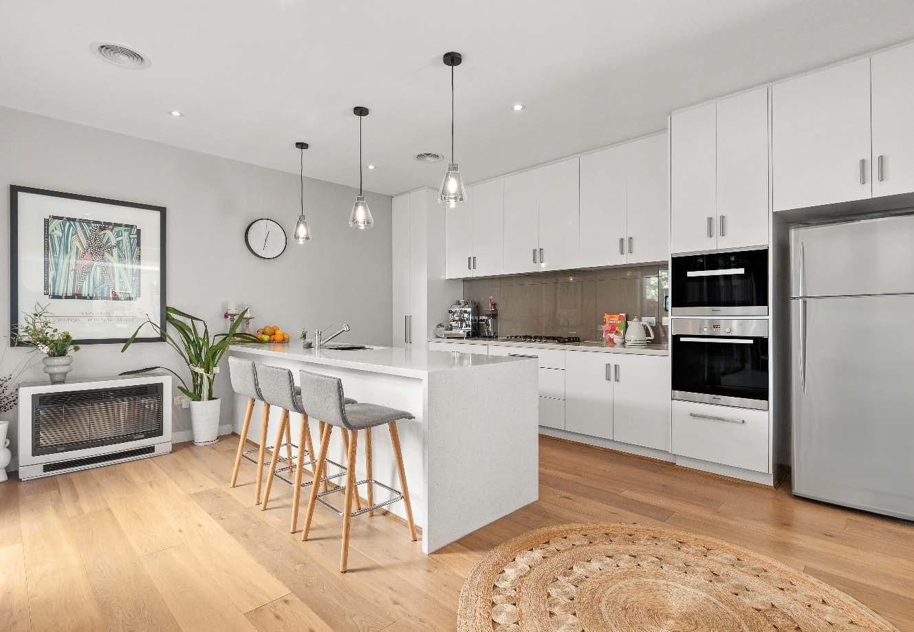 the ideal spot ideal relaxing & entertaining. The uncompromised quality continues through to a gourmet stone kitchen & butler’s pantry with quality stainless steel appliances & plenty of storage. Ascend the timber staircase where a landing retreat with hallway storage delivers a main bedroom with walk-in robe & ensuite. While two additional bedrooms with built-in robes & a central bathroom complete the accommodation. Other features include secure video intercom, keypad entry, split system heating/cooling & a single auto garage with additional off street parking for a second car behind auto front gates.