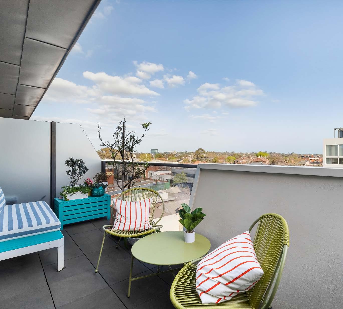 an onsite building manager & exclusive resortstyle amenities, including indoor & outdoor heated pools, a tennis court, a fully equipped gym & a BBQ terrace. Enjoy the best of both worlds with St Kilda on your doorstep, nearby Albert Park Lake, local cafes, the Royal Botanic Gardens, the beach & direct tram access to the CBD & Fitzroy Street.
