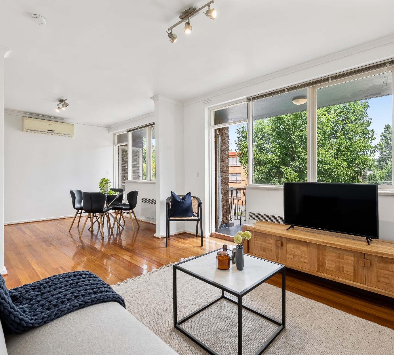 Perfectly positioned to take advantage of a vibrant St Kilda lifestyle, this updated apartment in a well presented block is one you won’t want to miss. Presenting the perfect opportunity for first home buyers wanting to break into the market or savvy investors seeking affordable entry into the market, this light filled sanctuary is sure to impress. With secure entry, it comprises a generously sized living & dining room with polished timber floors. This inviting space enjoys access to a sundrenched balcony with a lovely leafy outlook, ideal for relaxing & soaking up the sun or entertaining with ease. Adding to the appeal is a well appointed