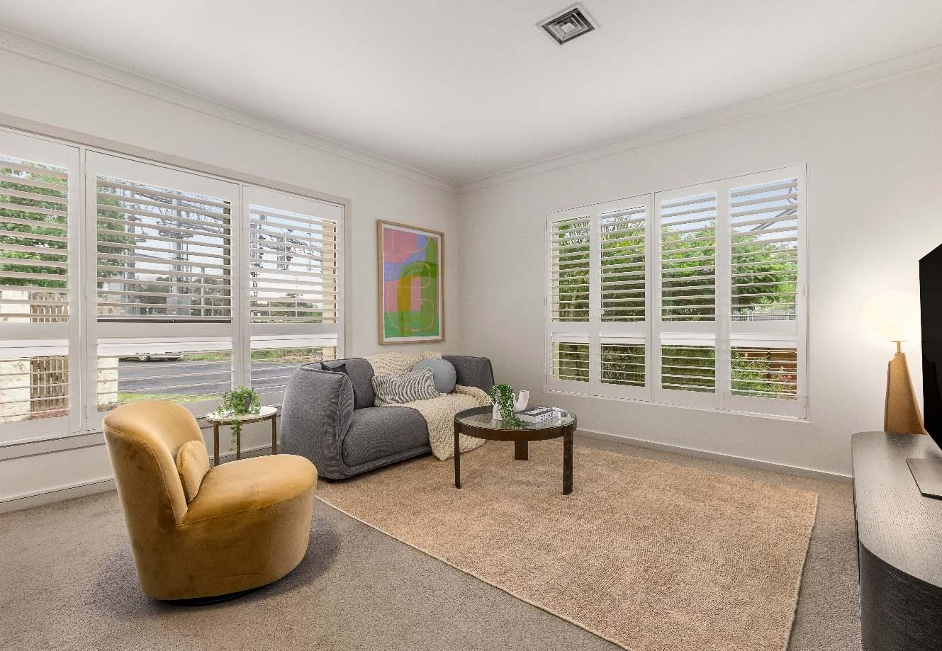 Bedrooms two & three are both of generous size & share a well-appointed, modern, bathroom complete with bath. Bedroom two opens onto a second private courtyard & bedroom three has a whole wall of robes. Features include, a delightful leadlight entry bringing you into a spacious hallway, ducted heating, alarm system, reverse cycle air conditioning, ceiling fans, remote control access two car garage with work shop space, additional off street parking, quality fixtures & fittings throughout. This residence is an easy walk to childcare, schools, bus services, Chesterville Road Village & moments to Centre Road shops.