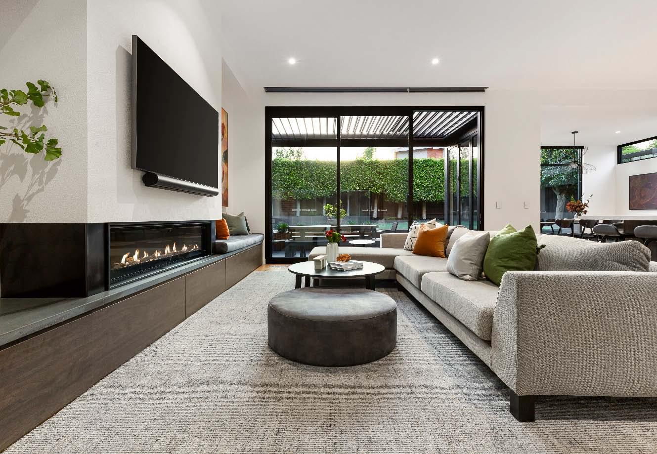 pool, built-in BBQ, a sauna & surrounding decks & terrace. Overlooking an internal courtyard, the sleek gourmet kitchen is appointed with stone benches & Smeg appliances. The main bedroom with walk-in robe & designer en suite is set apart from a fabulous children’s zone comprising a second bedroom with chic en suite & built-in robe, three additional robed bedrooms, a retreat, study & stylish bathroom. Desirably situated close to Glen Huntly station & trams, it includes video intercom, ducted heating/cooling, reverse cycle air-conditioner, audio-wiring, solar panels & garage.