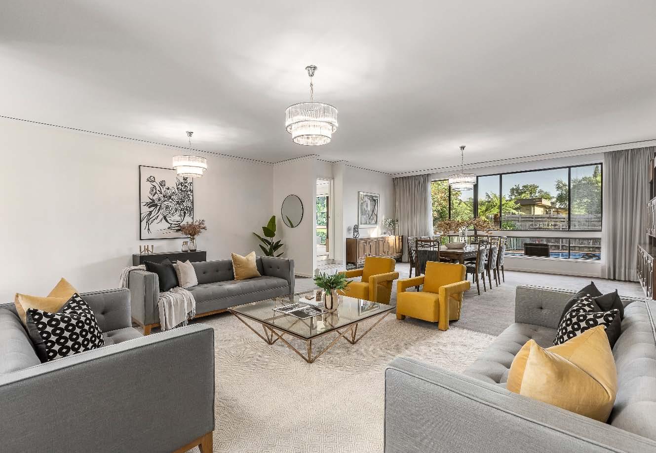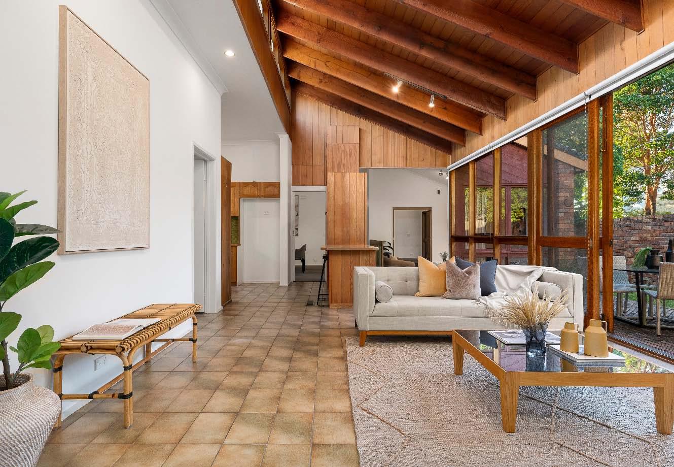 A sensational example of mid-century architecture, this stunning brick residence was the first house designed by the renowned SJB founder, Charles Justin. Built in 1972, it’s exceptionally generous dimensions combine the signature original style, proportions & finishes with the latest in contemporary design & luxury. A welcoming marble foyer introduces expansive free-flowing living, dining & entertaining spaces featuring oak floors, high ceilings & floor-to-ceiling glass throughout. Glass sliders allow the living options to continue out to the private northwest facing garden oasis with picturesque, solar-heated