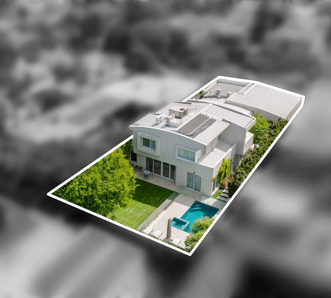 culinary kitchen delights with marble benches, a breakfast bar & a suite of stainless-steel Miele appliances, enhanced by ample storage & a nearby study nook. The top level offers an additional two bedrooms with generous storage & sliding windows for refreshing breezes, a central bathroom & huge roof top terrace perfect for entertaining. Further highlights include a powder room, reverse cycle heating & cooling, an alarm system, video intercom, secure front entry, double glazing, solar panels, a Euro laundry, garden irrigation & generous two-car garage—showcasing state-of-the-art appeal.