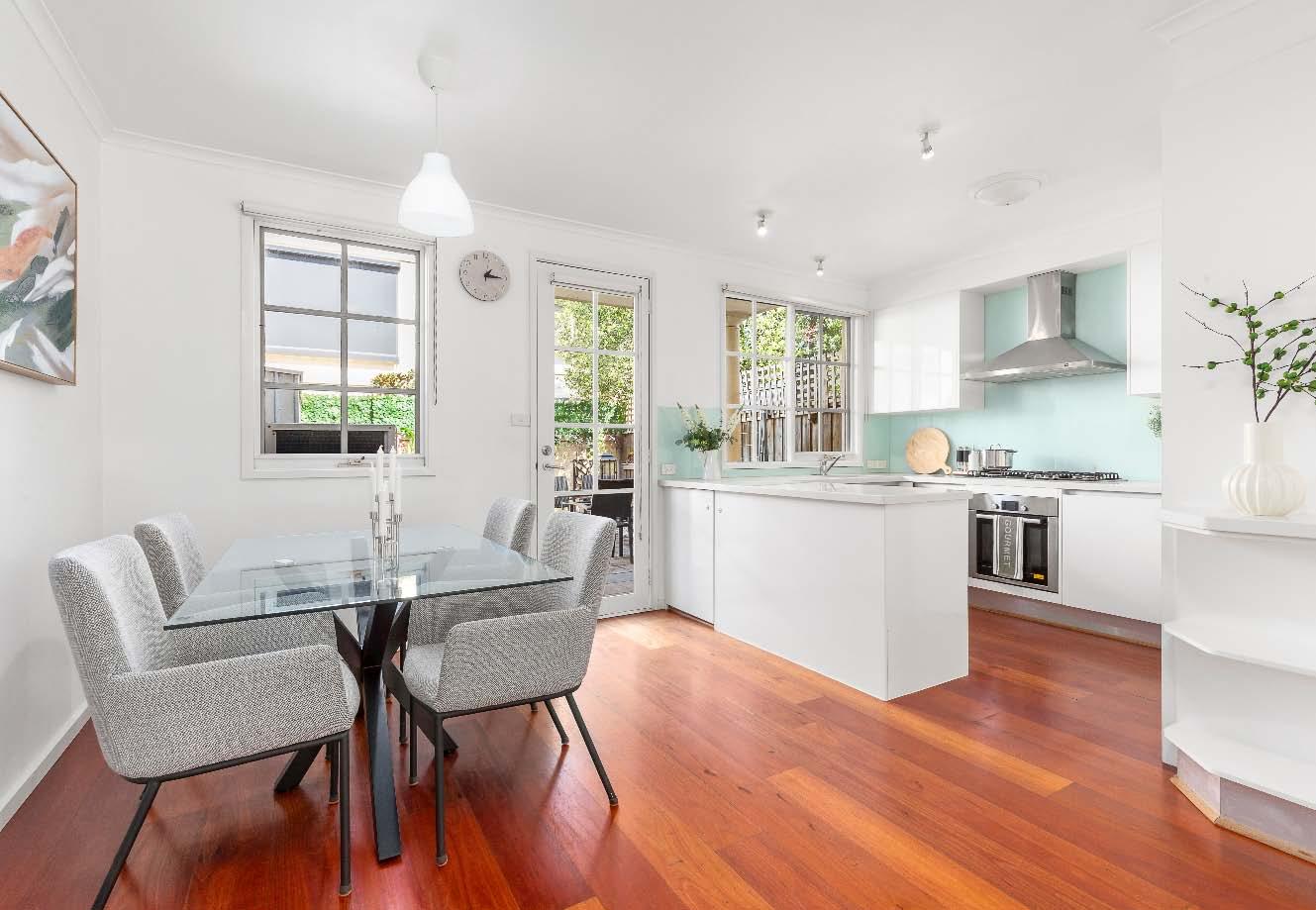 Showcasing stylish contemporary living, this modern inner-city townhouse offers an enviable low maintenance lifestyle with fantastic indooroutdoor living & entertaining spaces. Offering the best of both worlds - peaceful & private with all the lively action of vibrant St Kilda East literally just moments away, this stylishly appointed home presents an excellent opportunity for first home buyers or savvy investors. Beyond a striking green front door, timber floors flow from the entrance hallway right through to a wonderfully expansive open plan living & dining zone with built-in cabinetry. Here, a sliding door opens out to a vast