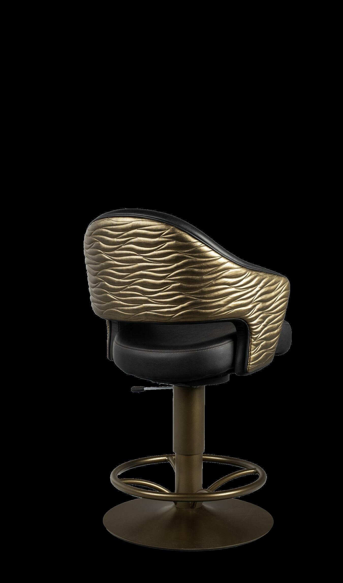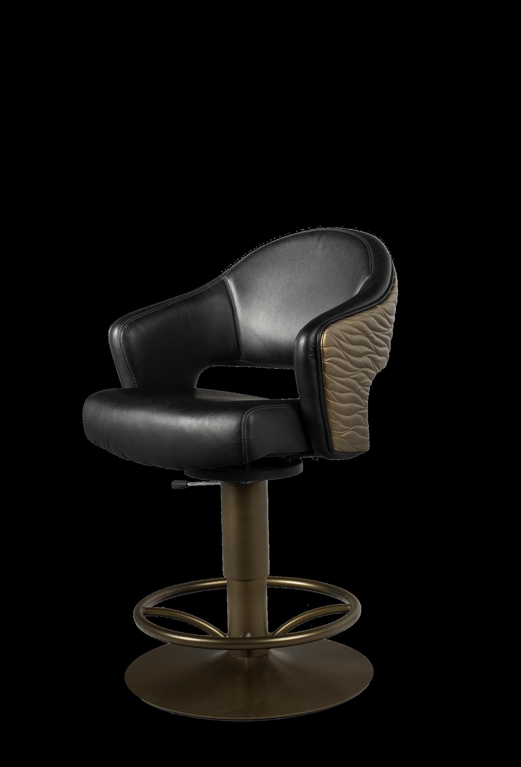Style: Milan Seat Width: 19” Seat Height: 20-24” Base: Hi-Lo Pedestal w/ Round Footrest Inside Back and Seat Upholstery: Ultrafabrics Brisa Fresco Peppercorn Outside Back Upholstery: Concertex Ebb & Flow Specifications 25