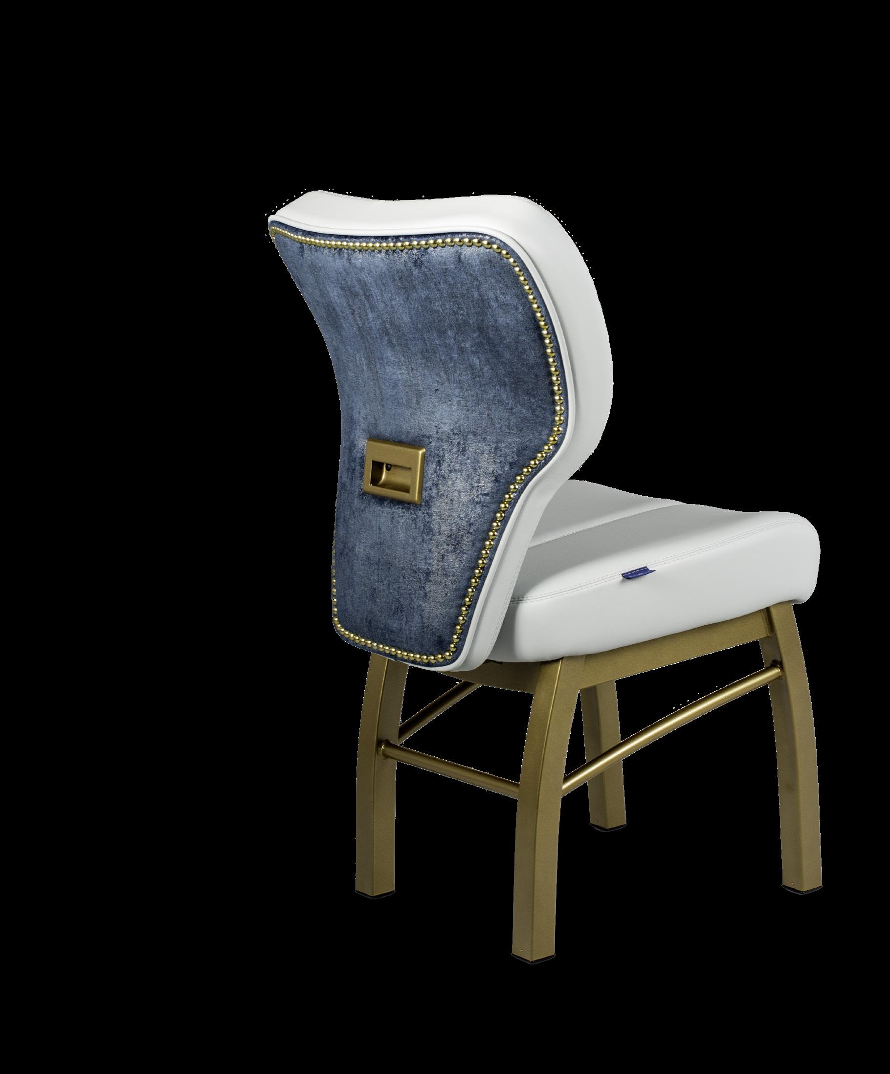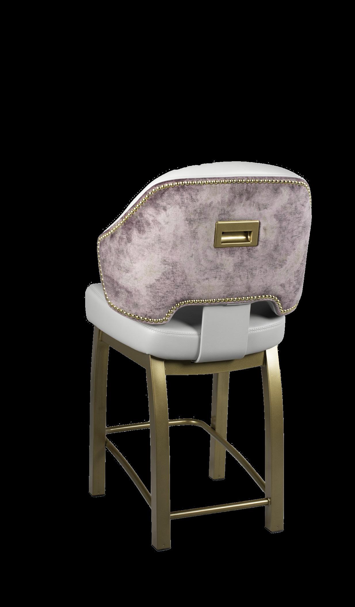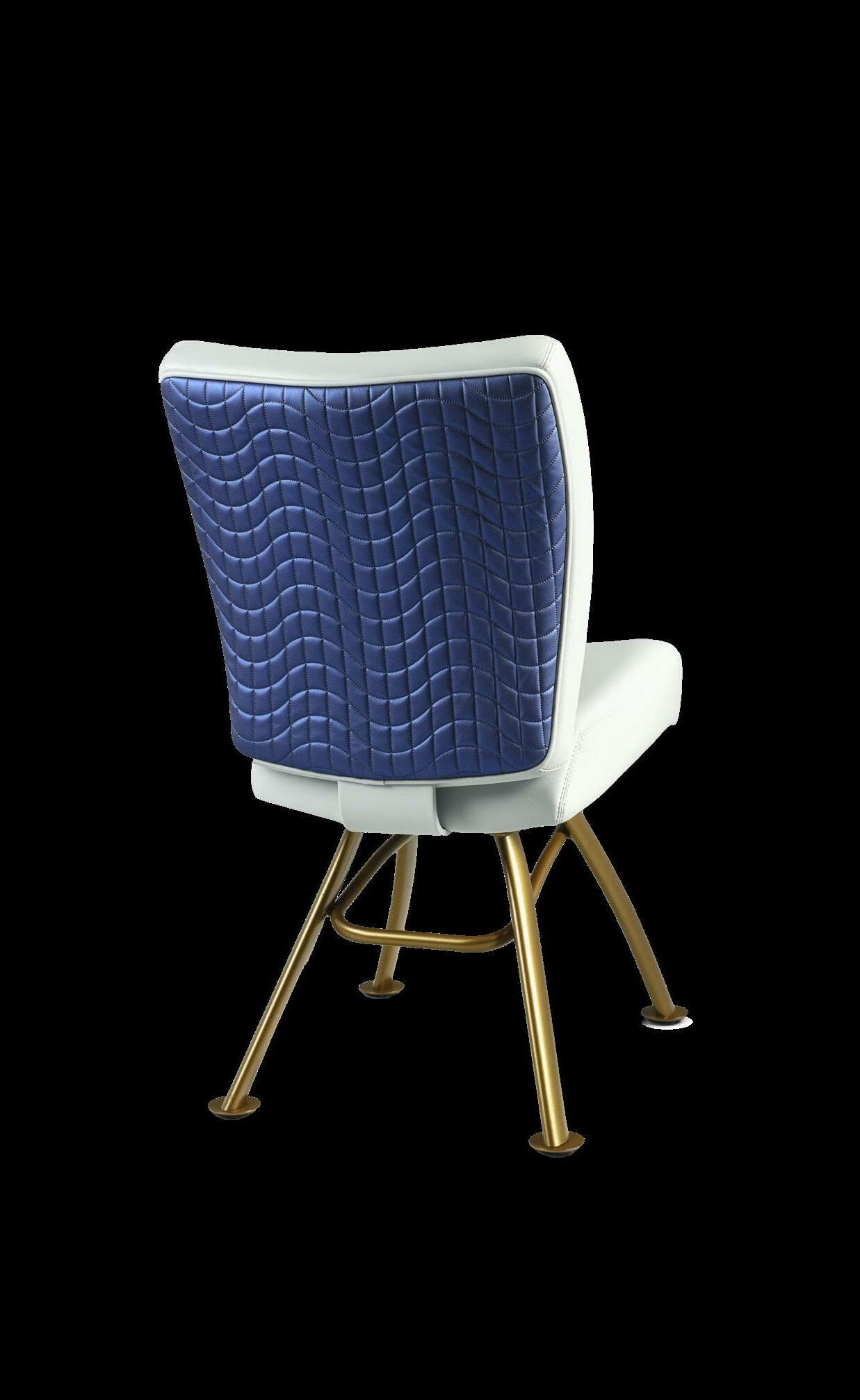 Style: Monaco Seat Width: 19” Seat Height: 19” Base: LX2 Designer with Stretchers Inside Back and Seat Upholstery: GMF Fabulous Glacier Outside Back Upholstery: Architex Lavish Navy Upgrades: Decorative Nails, Metal Insert Handle Monaco