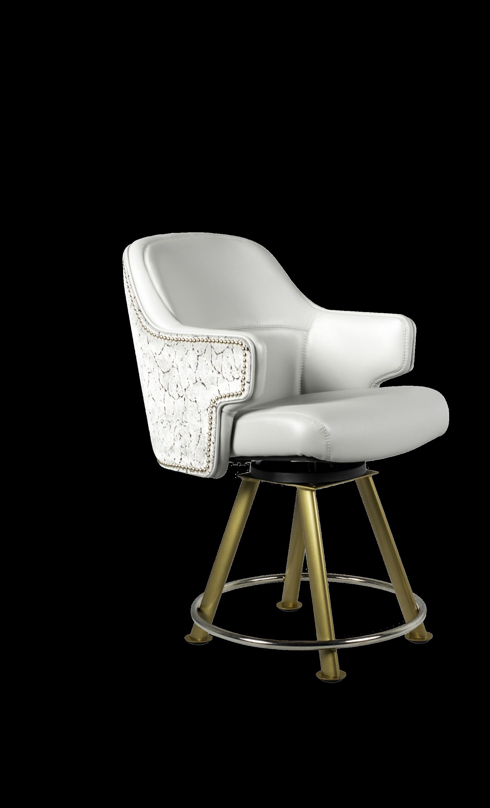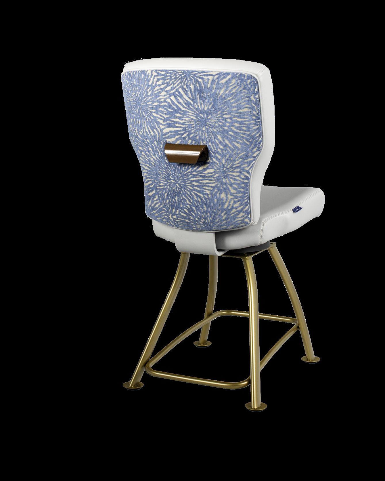 Style: San Remo Seat Width: 19” Seat Height: 23” Base: Pedestal w/ Epic Footrest Inside Back and Seat Upholstery: GMF Fabulous Glacier Outside Back Upholstery: Architex Coconut Grove Etched Upgrades: Metal External Handle San Remo Specifications 31