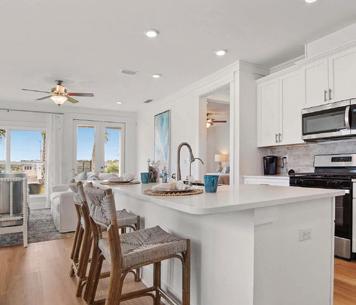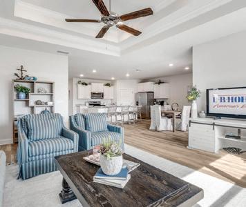 Welcome to the Islamorada plan at Breakfast Point East, located in desirable Panama City Beach. As you enter this home through the covered entry, you will find an elegantly appointed foyer with EVP flooring and a stairway finished with wood treads leading to the second floor. The entry hall leads to the open concept living area where the kitchen, dining area, and family room. Modern features adorn the chef’s kitchen including quartz countertops, stainless-steel appliances including a gas cooktop stove, so -close Shaker-style cabinetry, and a full pantry with built-in wood shelving. The primary bedroom is located on the main level of the home just o the family room. All guest bedrooms are on the second level.