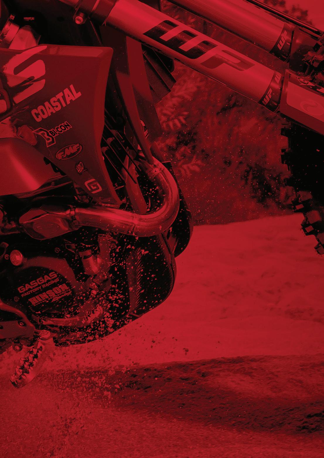 18 CLICK HERE GASGAS Motorcycles GmbH reserves the right – without prior notice and without specifying reasons – to amend the technical specifications, fittings, scope of supply, colours, materials, services offered and provided, etc, or to discontinue them without replacement, or to stop manufacturing a particular model. All details are non-binding and specified with the proviso that mistakes, printing, setting and typing errors may occur; such information is subject to change without notice at any time. Before ordering or purchasing any of the products or models offered, please obtain information regarding the respective scope of equipment and supply from your local GASGAS dealer. FIND YOUR NEAREST DEALER GASGAS TECHNICAL ACCESSORIES