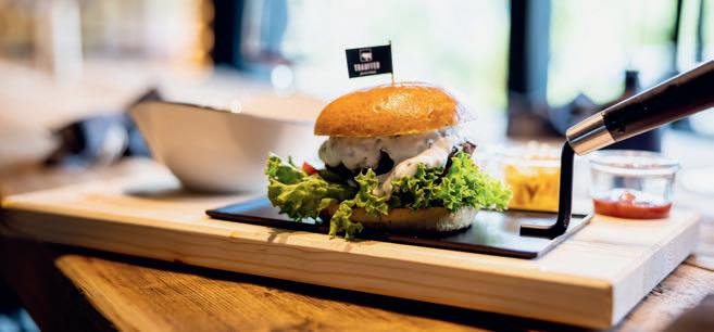 Ein weiteres Highlight ist das à la carte Restaurant Alfred’s� Dort befindet sich das Rooftop-Restaurant mit gemütlicher Dachterrasse, von welcher der Blick über die umliegende Bergkulisse beeindruckt Im Alfred’s wird auf beste Qualität und regionale Produkte gesetzt, dabei aber schweizerisch und bodenständig geblieben � Von vegetarischen und veganen Gerichten über regionale Spezialitäten, bis hin zu unvergesslichen Burgern oder exklusiven Dry Aged Meat für Fleischtiger gibt’s im Alfred’s alles, was das kulinarische Herz begehrt �