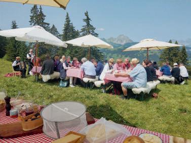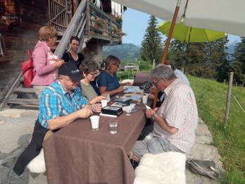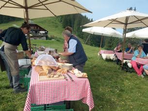 me, auf der Wispile in Gstaad und konnten der Familie Dominik Matti zuschauen, wie Alpkäse hergestellt wird Kunstvolle Fingerfertigkeiten zeigte Regina Martin beim traditionellen Scherenschnitt A lle konnten ihren eigenen Scherenschnitt aus scheiden und als Souvenir mit nach Hause nehmen Ein rustikales Apéro