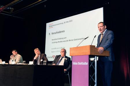 Nach den statutarischen Generalversammlungen führten die beiden Verbände GastroStadtBern und Umgebung (GSTB) sowie Hotellerie Bern+ Mittelland am Dienstag, 25. April 2023 einen gemeinsamen «Hotel-Gastro-Tag» im Novotel Bern durch. Gemeinderat Reto Nause richtete ein Grusswort an die zahlreichen Gäste; darauf folgte ein humorvoller Talk zwischen Viktor Giacobbo (Ko -