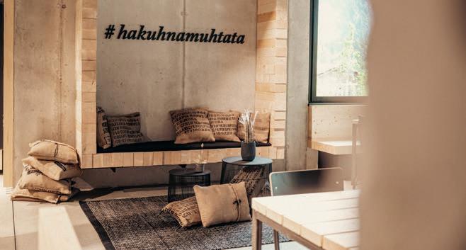sticht durch eine moderne Kombination aus Sichtbeton und Holz mit vielen liebevollen Details Schnell wird einem bewusst, mit wieviel Herzblut die beiden Häuser – die Erlebniswelt mit Kuhniversum und Gastronomie sowie das Bretterhotel – eingerichtet wurden