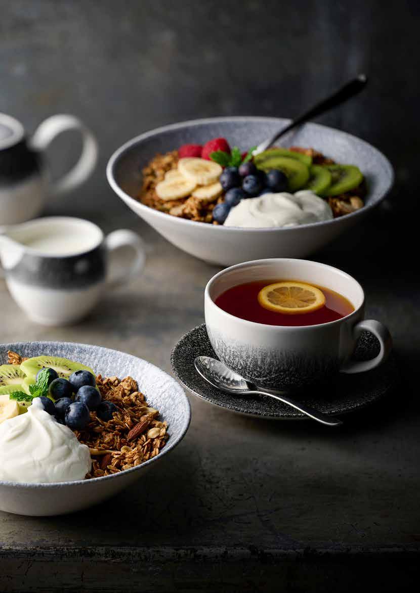 La collection Nourish comprend une gamme de bols et de pots à sauce décorés avec des émaux de style artisanal qui créent des variations de tons et des pièces uniques. Nourish est une gamme complète, idéale pour les repas, les accompagnements et les bols/repas. Nourish accompagne les plats frais et locaux du monde entier ! Les bols modernes et contemporains Stonecast Kochi sont introduits dans la collection Nourish. Les bols sont décorés par trempage, dans des combinaisons d’émaux : Siena Brown réactif avec les populaires Stonecast Duck Egg et Barley Whites.
