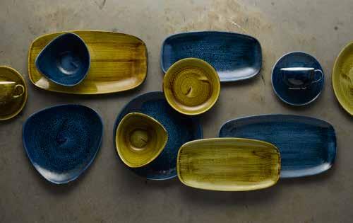 Available in two vibrant and eye-catching colours, Olive and Ultramarine. The reactive Stonecast Plume colour is hand applied making each tabletop piece slightly different.