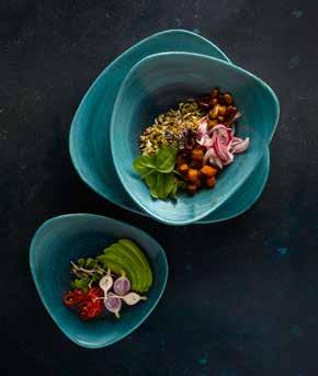 Aqueous está disponible en tres tonalidades, una combinación de colores evocadora de los tonos que se encuentran en las masas naturales de agua. El diseño acabado a mano crea impacto y realza la presentación de los alimentos. Fabricado en el Reino Unido, Stonecast Aqueous está diseñado para soportar las exigencias en el ámbito hostelero.