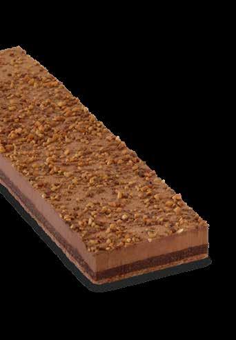 All-chocolate refined textures: airy dark chocolate mousse and crunchy cookie with crispy crêpes pieces. Gourmet decor with natural grace. Can be cut frozen, easy to portion into 8/10 servings.