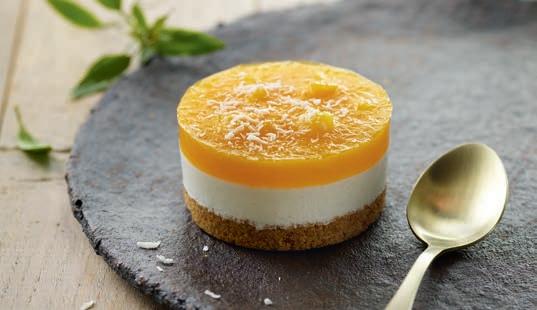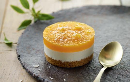 Can be cut frozen, easily portionable (10-12 portions)Sponge cake, crisp crumble layer, lemon cream, vanilla whip cream based mousse. Thaw in refrigerator for 4h