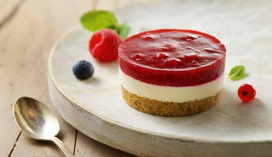 Facilement portionnable, peut être coupée surgelée (12-15 portions) - Une alternance de génoise, de mousse framboise et de biscuits doigts de dames. Décongeler 4 h au réfrigérateur.