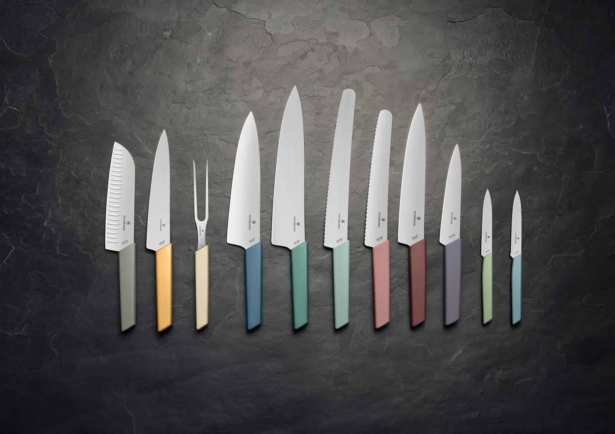 Die Haushalts- und Berufsmesser von Victorinox bieten die perfekte Balance aus Form und Funktionalität. Neben ihrer schlichten, zeitlosen Ästhetik besitzen sie hervorragende Eigenschaften, die für gutes Design unverzichtbar sind.